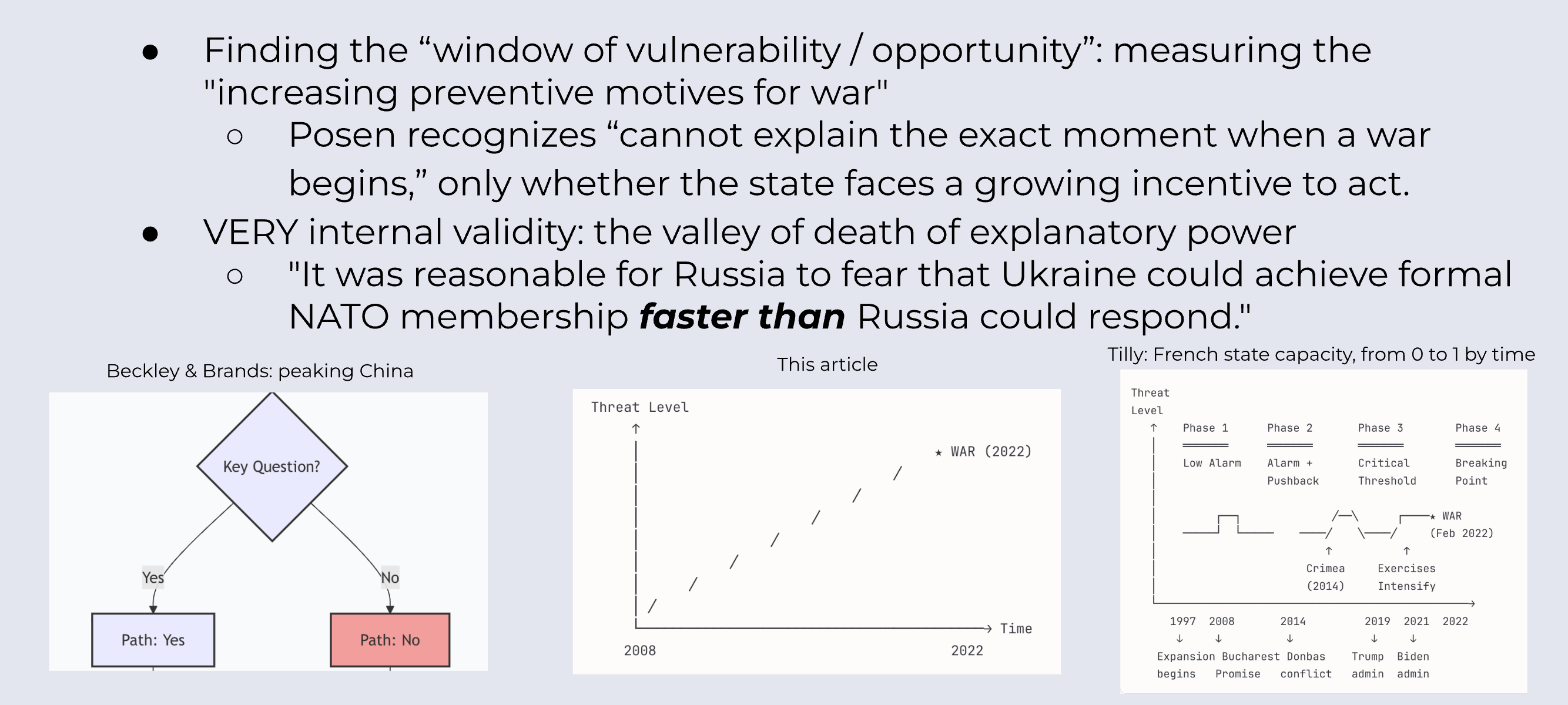- 政治学的视角:我现在已经不学政治了,retrospectively。我觉得这个视角的优势,是有一点功能主义的 = 能抓住【用途】这件事情,并且能逻辑性地说the end justifies the means;局限性 = 平行发生的很多事情,就没办法归因,会为了确定原因要一直争吵。