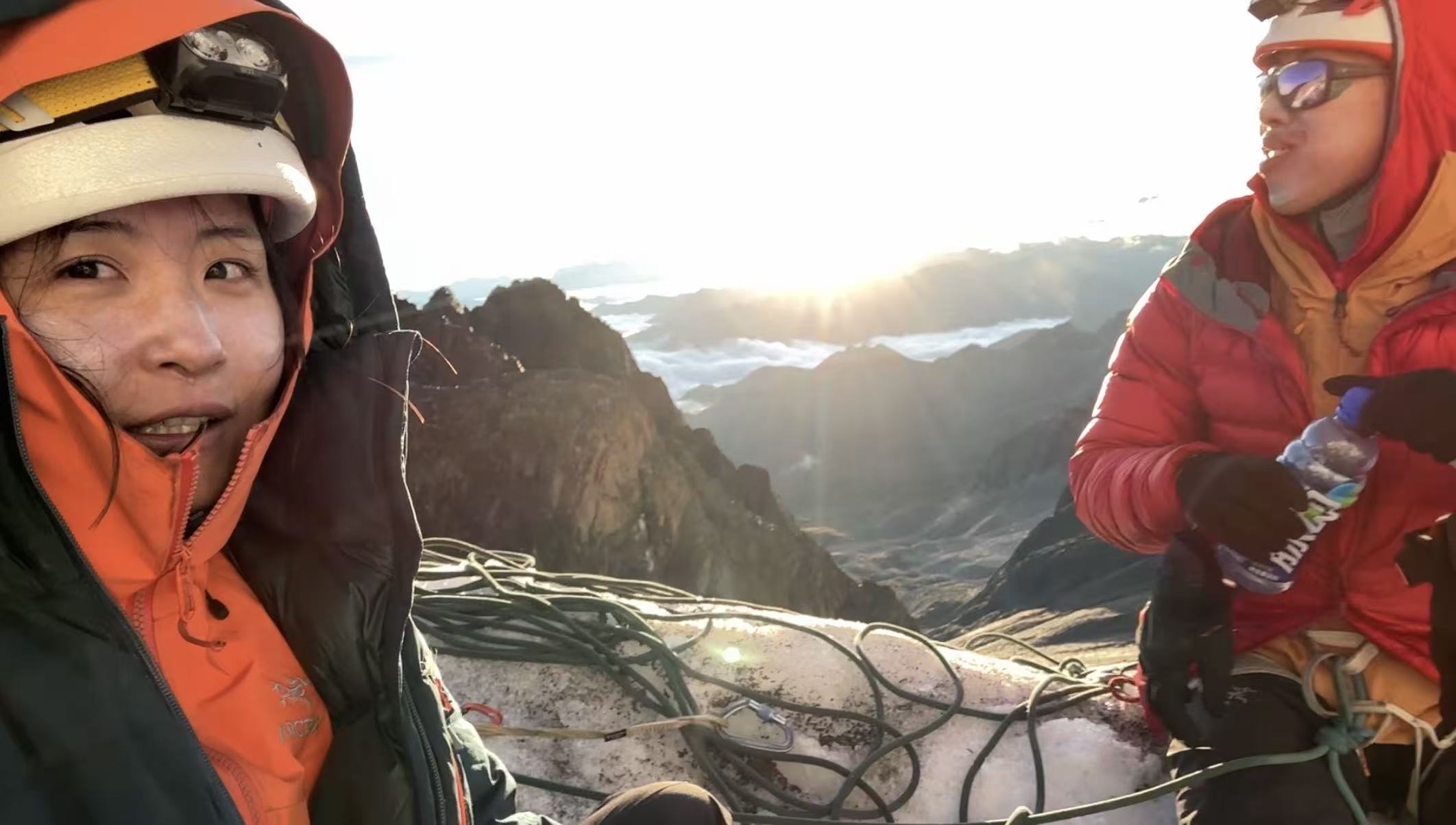 Ivy和搭档在夏羌拉难点过后休息,太阳刚出来