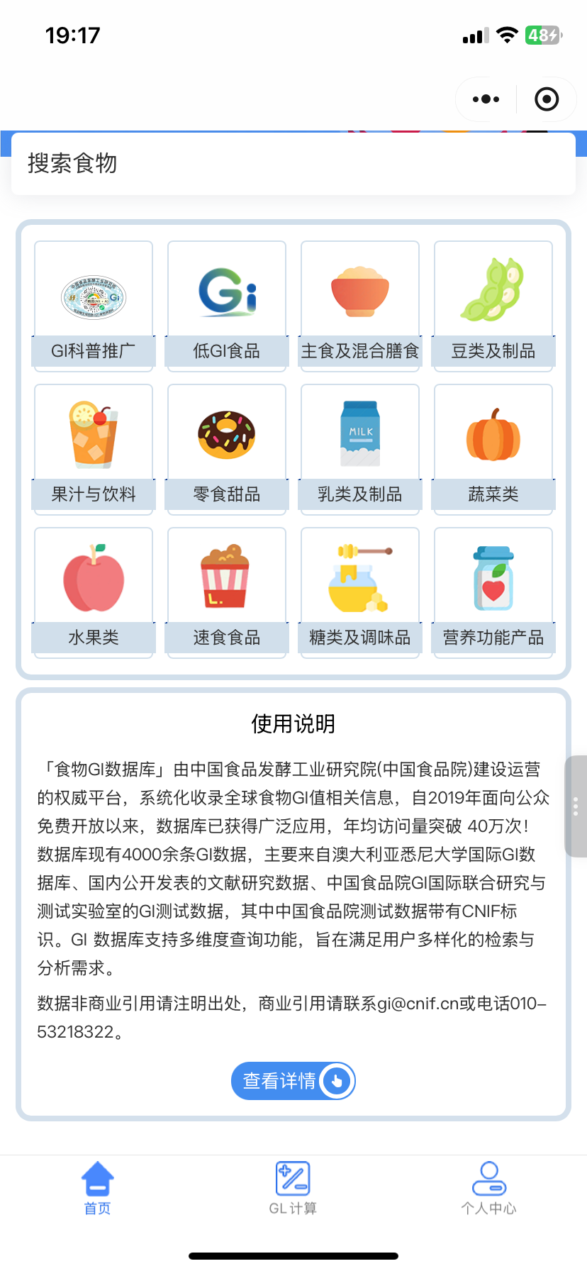 查询食物的GI和GL值的方法&小工具——微信小程序