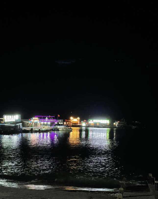 要先在码头座个船,才能到对面的渔排