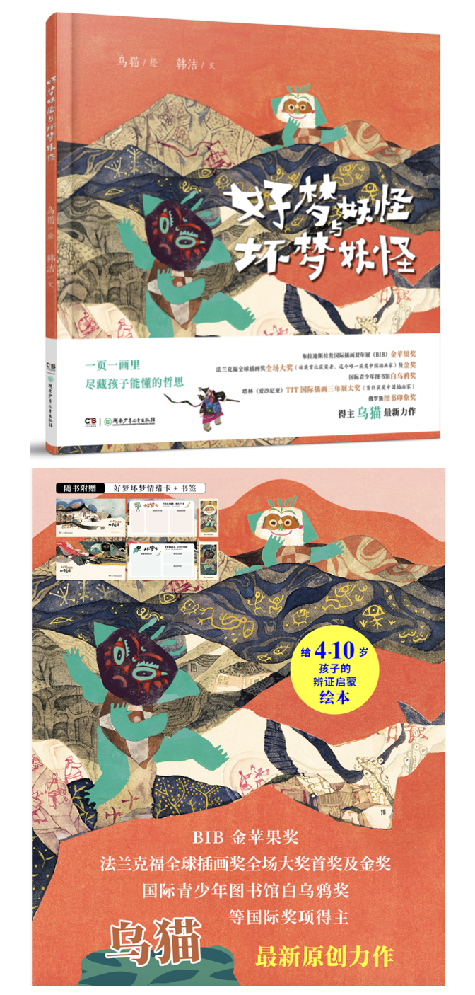 插画家乌猫,布拉迪斯拉发国际双年展金苹果奖、法兰克福全球插画金奖及全场大奖得主,此番和他“双剑合璧”的创作搭子韩洁老师,携新鲜出炉的《好梦妖怪和坏梦妖怪》来到乐BOOK之分享艺术心得。如何让孩子从形象一体的绘本里读懂哲思,怎么从中国民间志怪故事里找到创意源点,怎样以童心照耀童心,我们一起聊了聊中国儿童绘本的艺术表达。
