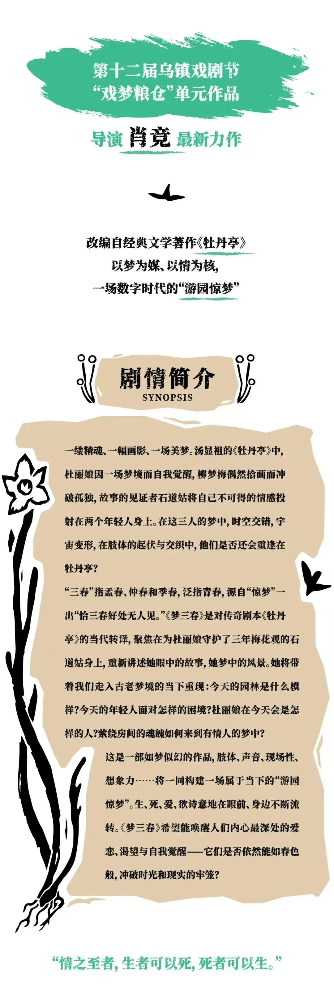 2、曾在乌镇戏剧节带来《桃花扇》《罗曼蒂克偶尔到来》《奔月》三部特邀剧目,今年在戏梦粮仓单元带来《梦三春》。接到杨婷导演的邀约后,你是如何想到从《牡丹亭》中找到创作灵感的?两者之间有什么关联?