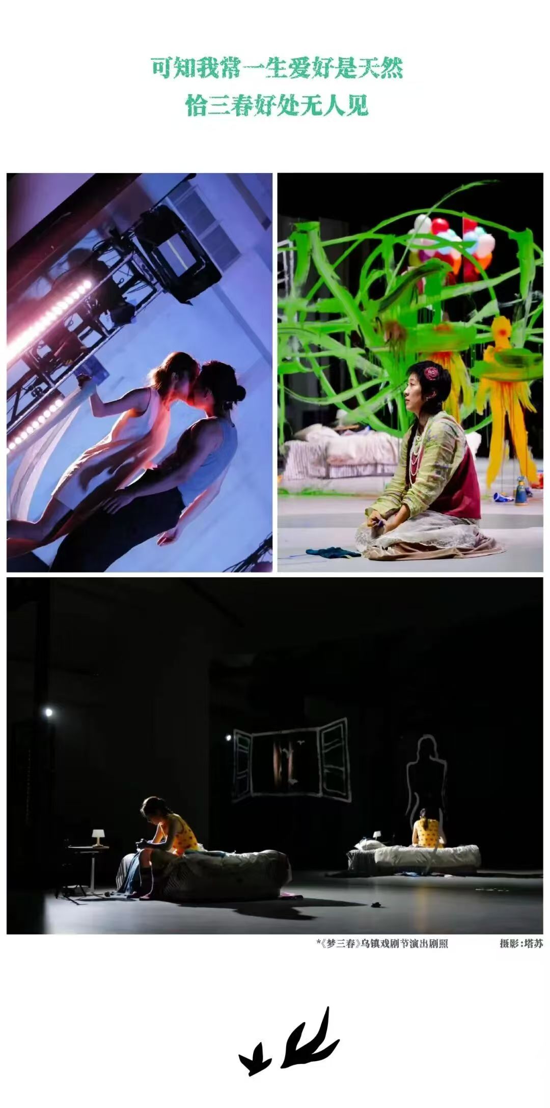 11、今年是第几次来到乌镇戏剧节?从《桃花扇》《罗曼蒂克偶尔到来》《奔月》再到《梦三春》,你的创作做到了你说过的“像水一样覆盖看不见的地方”了么?你想对观众表达什么?