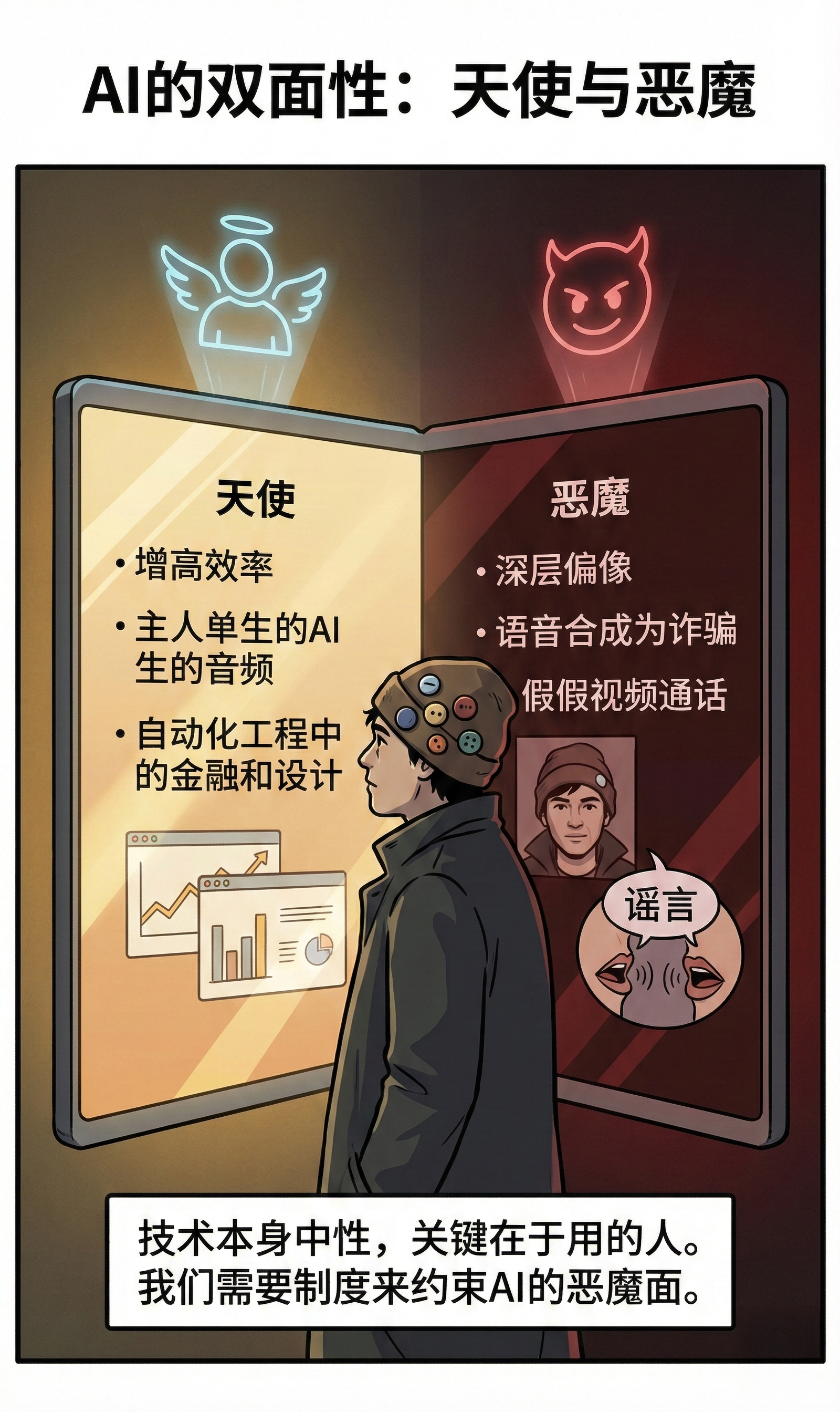 · 技术本无罪,用者定善恶: AI作为中性工具,如何被用作效率引擎,又如何沦为高仿真诈骗的帮凶?