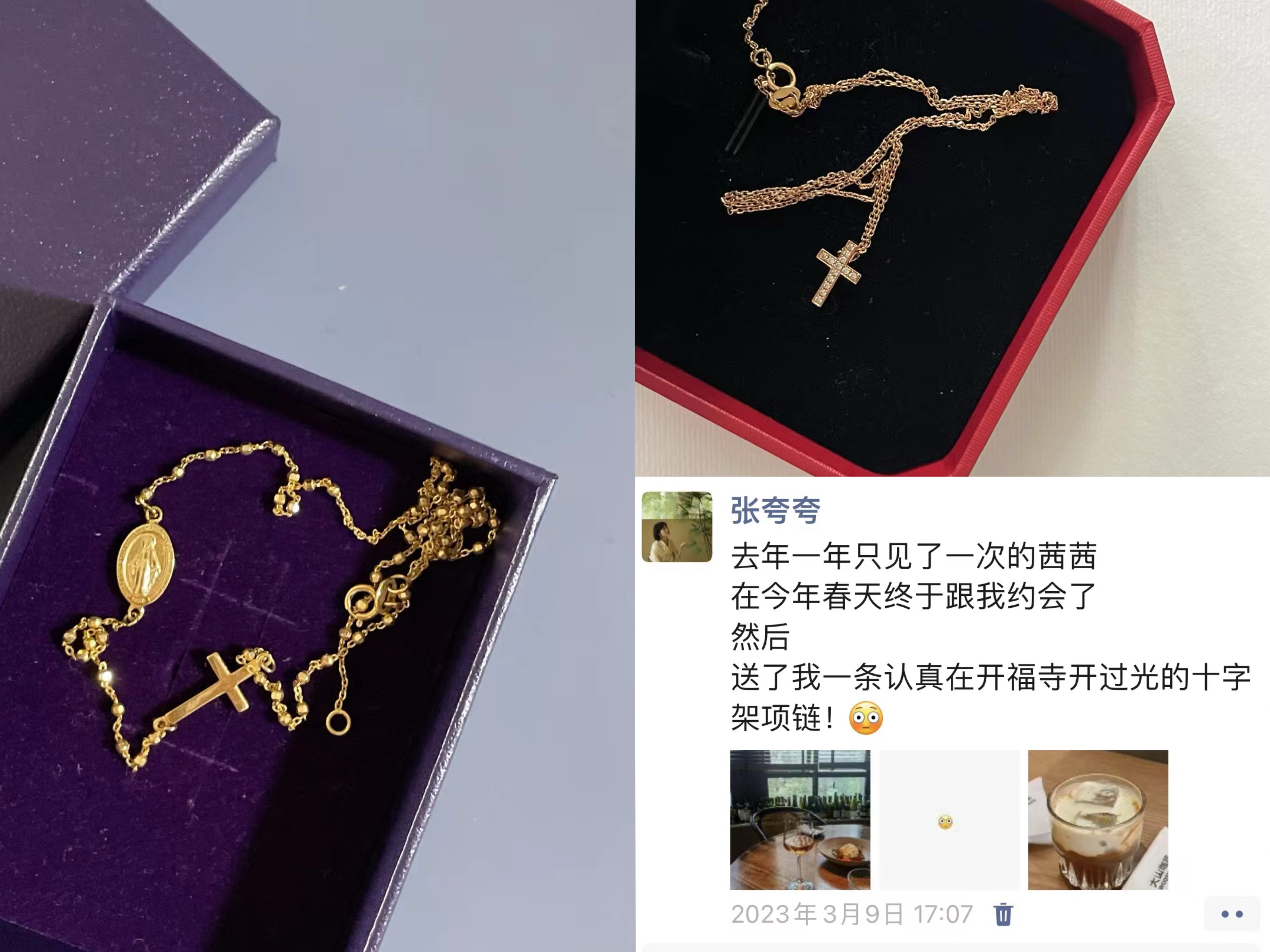 茜茜和她妈妈送给夸夸在开福寺开过光的十字架项链
