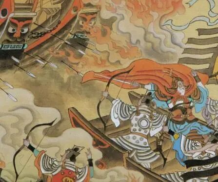 黄盖在这场火攻中表现尤为突出。据《三国志》记载,他在点燃火船后,因船速太快,与联军主力脱节,被流矢射中落水,幸亏被韩当及时发现救起,才捡回一条性命。战后,孙权论功行赏,任命黄盖为武锋中郎将,负责平定江夏郡的叛乱,他也因此在江东军民中威望大增。