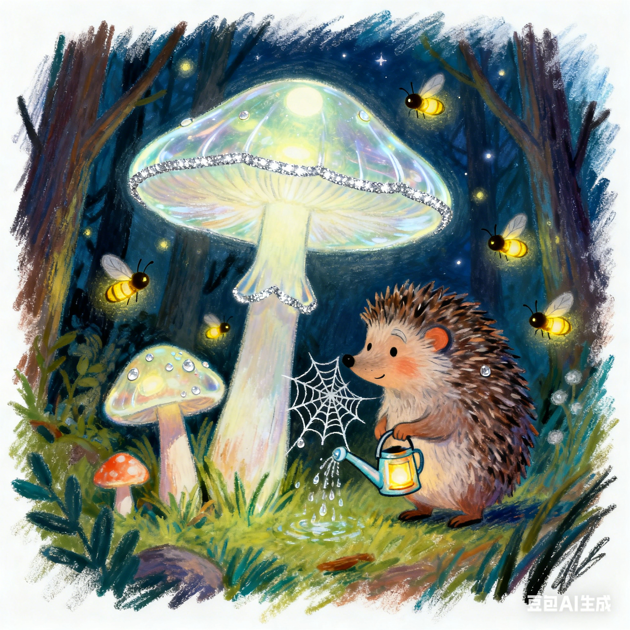 ——在这片森林的东北角,有一片特别柔软的草地,草地上长满了会发光的蘑菇。不是所有蘑菇都会发光,只有那种伞盖半透明、边缘带着银线的“月光菇”才有这种本事。而整个森林里,只有一位居民懂得如何照料它们——一只上了年纪的刺猬。