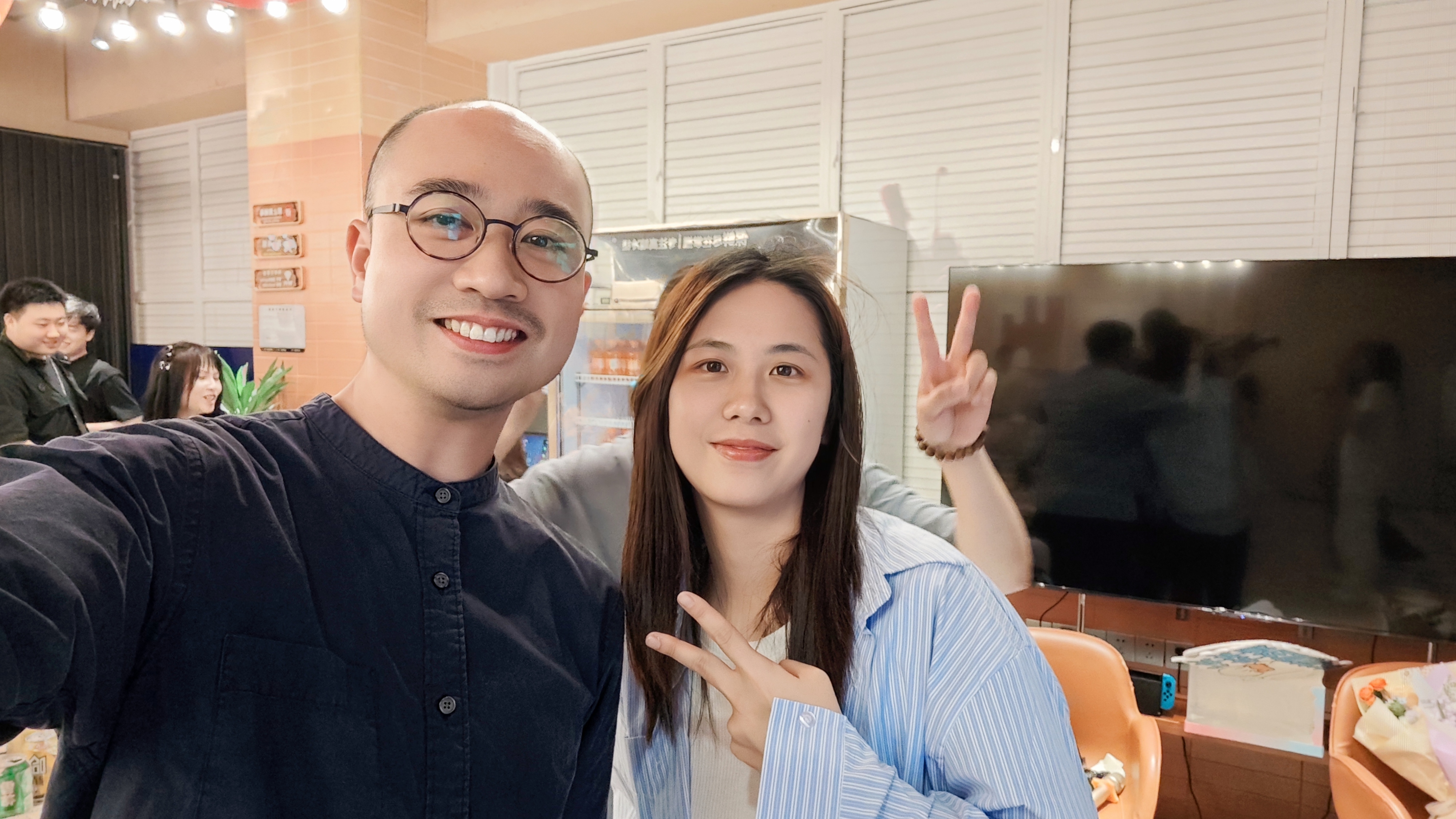 (图4: 2025年5月23日,今年我们这届24-25MSCRIM五月考完试的毕业聚会上,水哥标准的自拍动作,背后挡住的是学霸东哥的“yeah”)