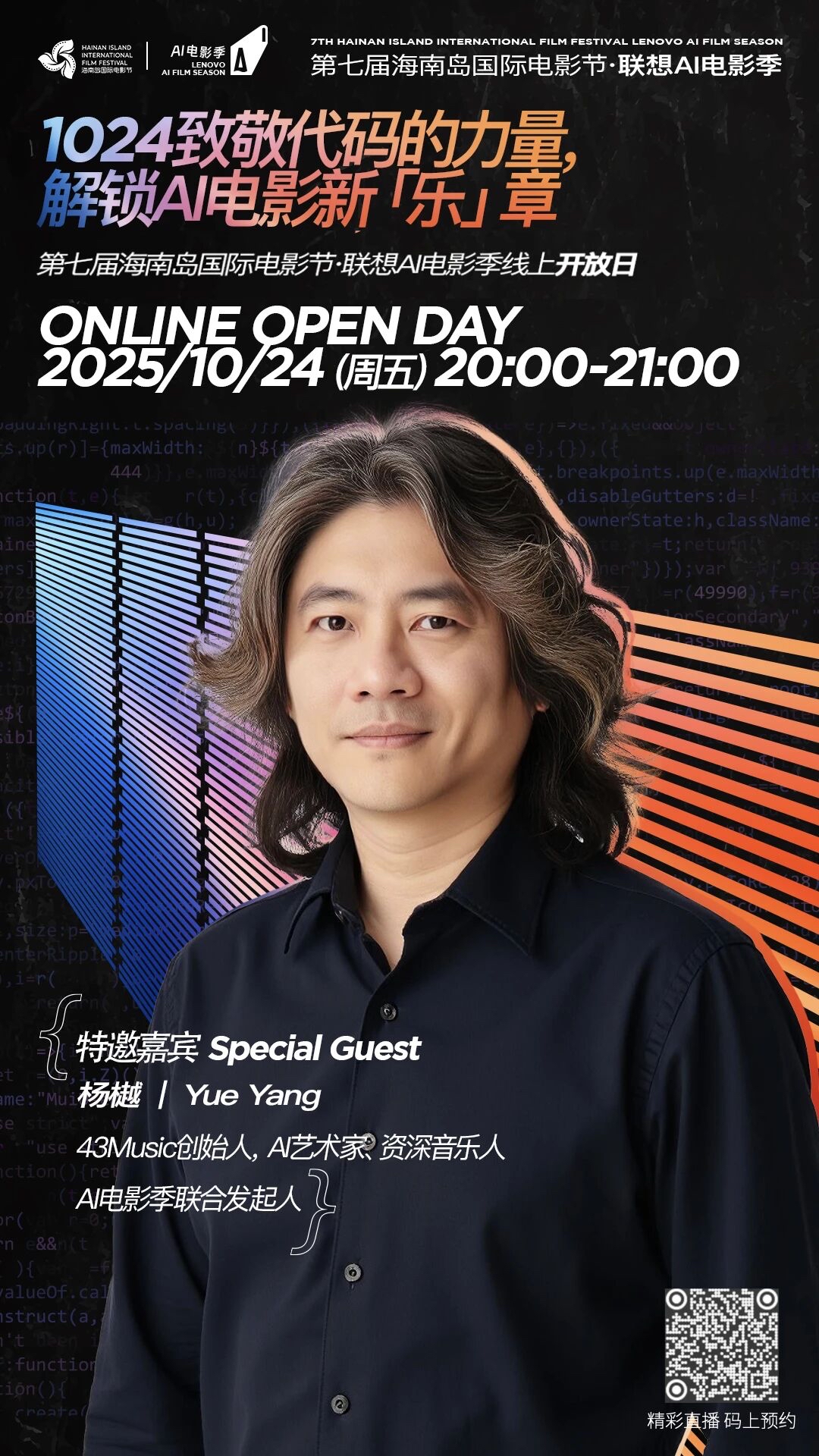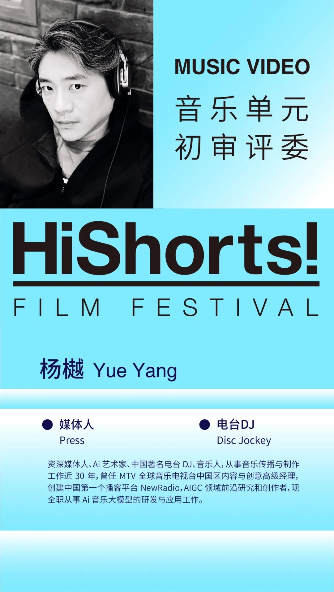杨樾,43 Music 创始人,AI艺术家,音乐圈最早使用AI创作的探索者之一。2024钛媒体T-Edge全球创新大会AIGC内容探索奖得主,资深媒体人、中国著名电台DJ、从事音乐传播与制作工作近30年,曾任 MTV 全球音乐电视台中国区内容与创意高级经理,创建中国第一个播客平台 NewRadio, AIGC 领域前沿研究和创作者,现全职从事 Ai音乐大模型的研发与应用工作。