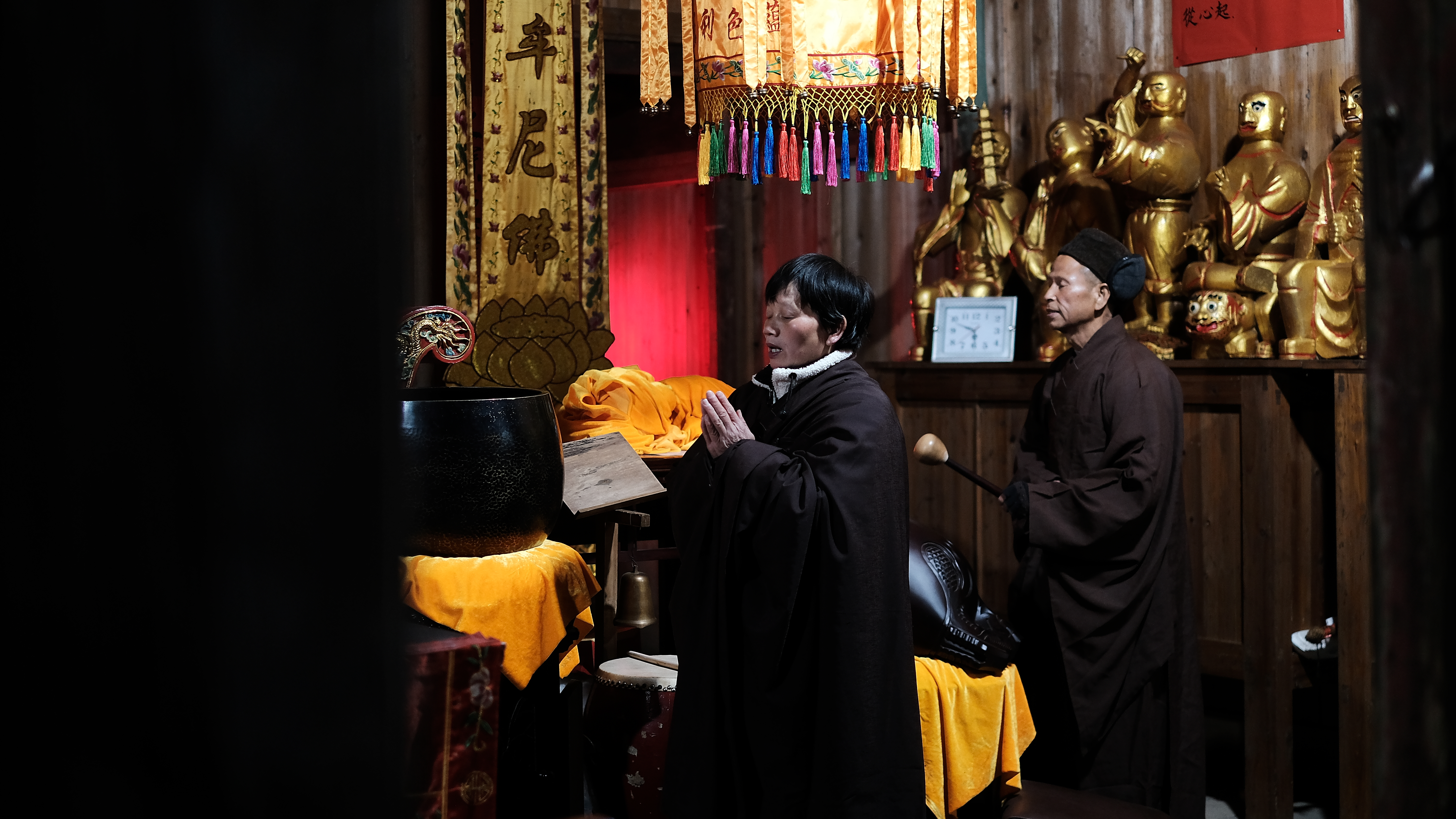 建于唐宋时期的浦城轮藏寺兴盛时有房屋百间僧侣百人,如今只有一位师父守寺。那日,「走神」一行人错过午饭,仅以竹林煮茶果腹,傍晚在轮藏寺遇到一行来上香的居士,后者在寺中做饭款待了他们。