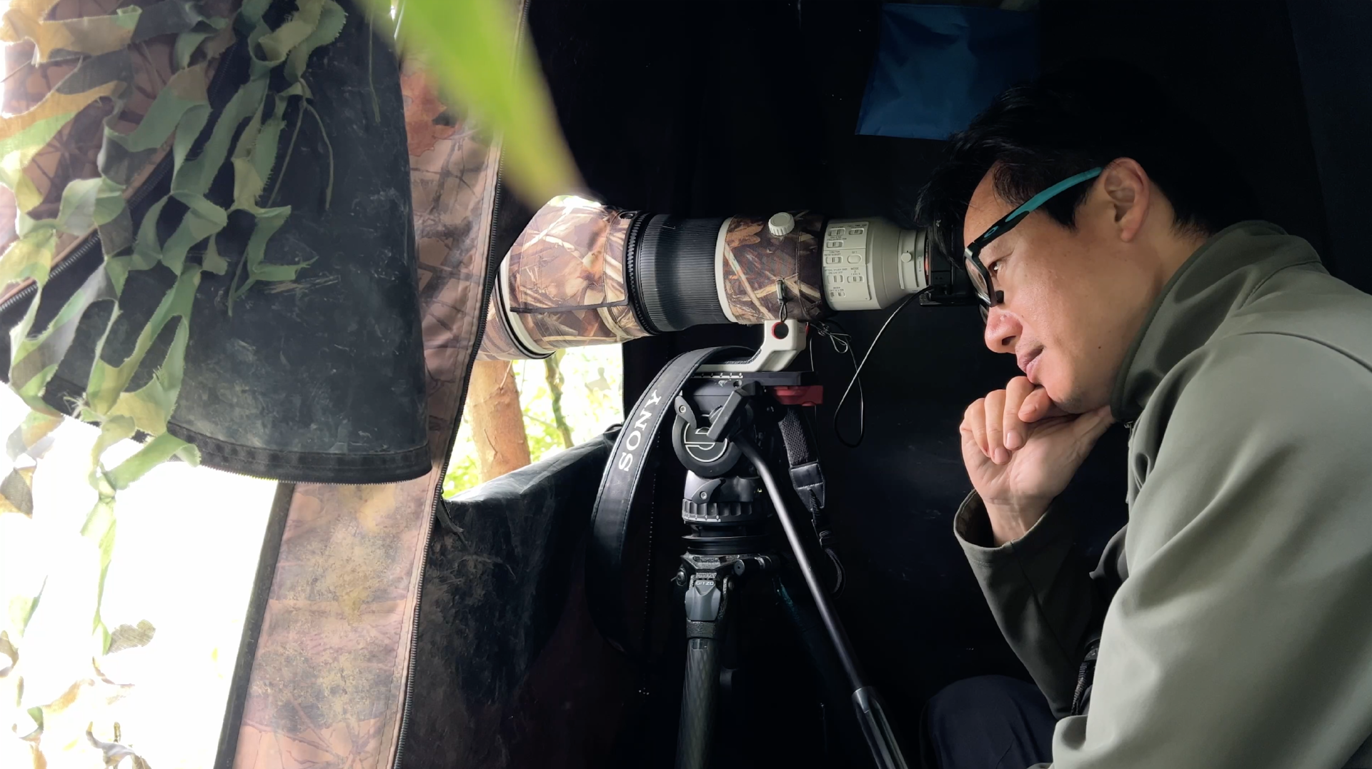 ▲油麻菜在帐篷中蹲守
