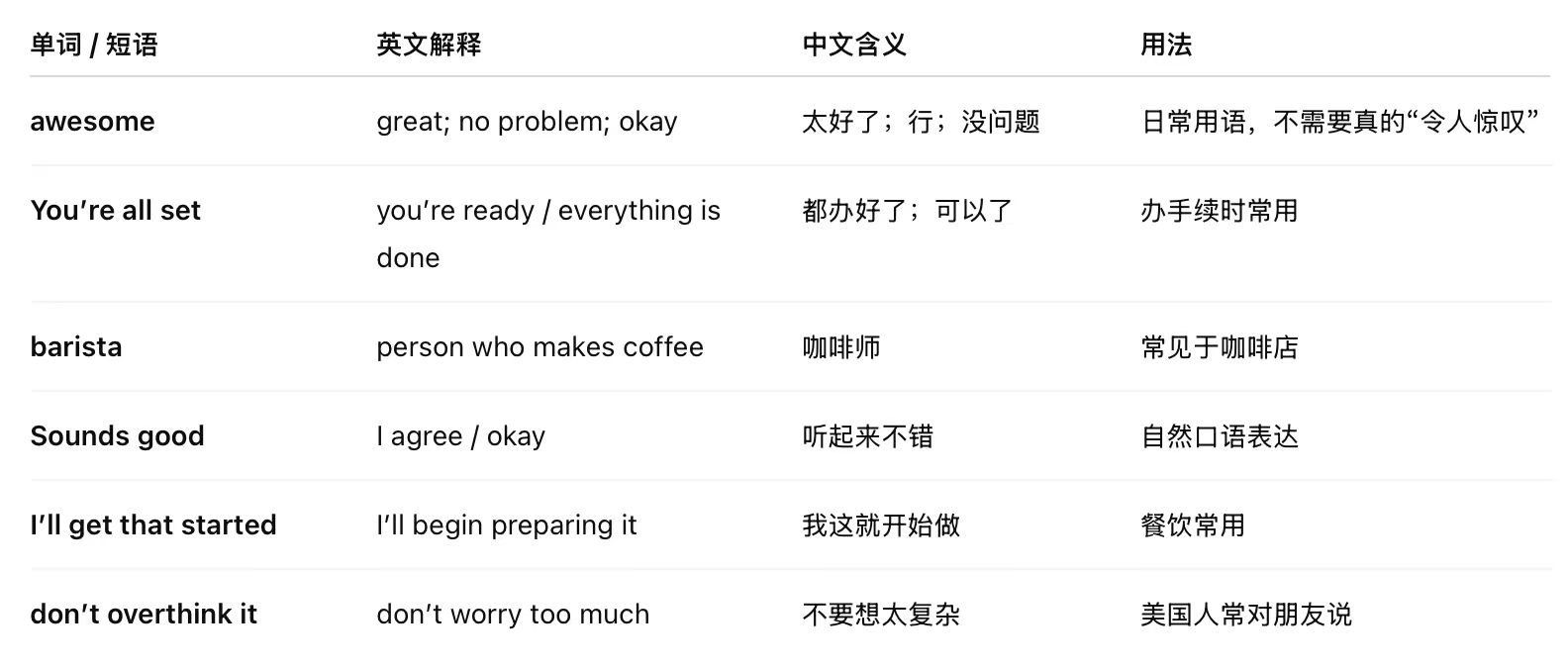 遇到 “Awesome!” → 不用紧张,他们只是在表达正能量。