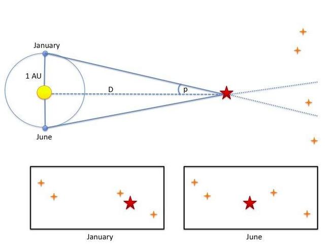 视差概念,19 世纪贝塞尔用三角视差法测算出天鹅座 61 距离地球 10.4 光年,同时说明该方法受限于角度精度,对几万光年外天体测量误差极大。