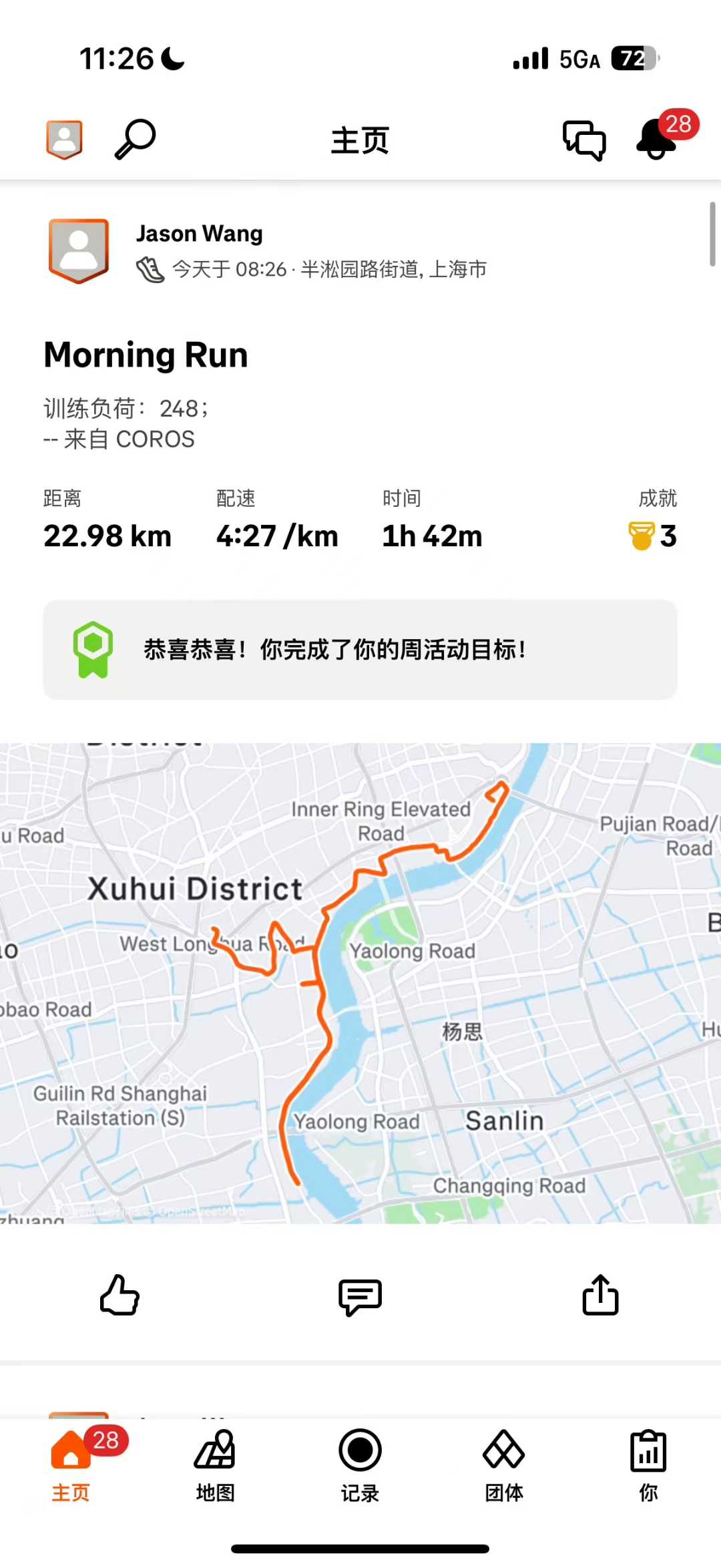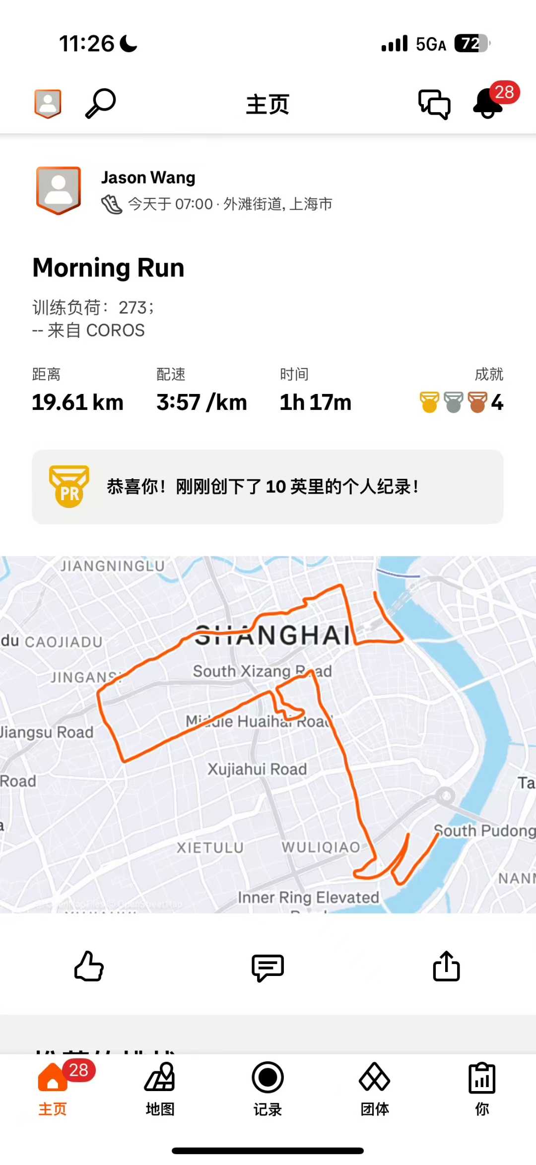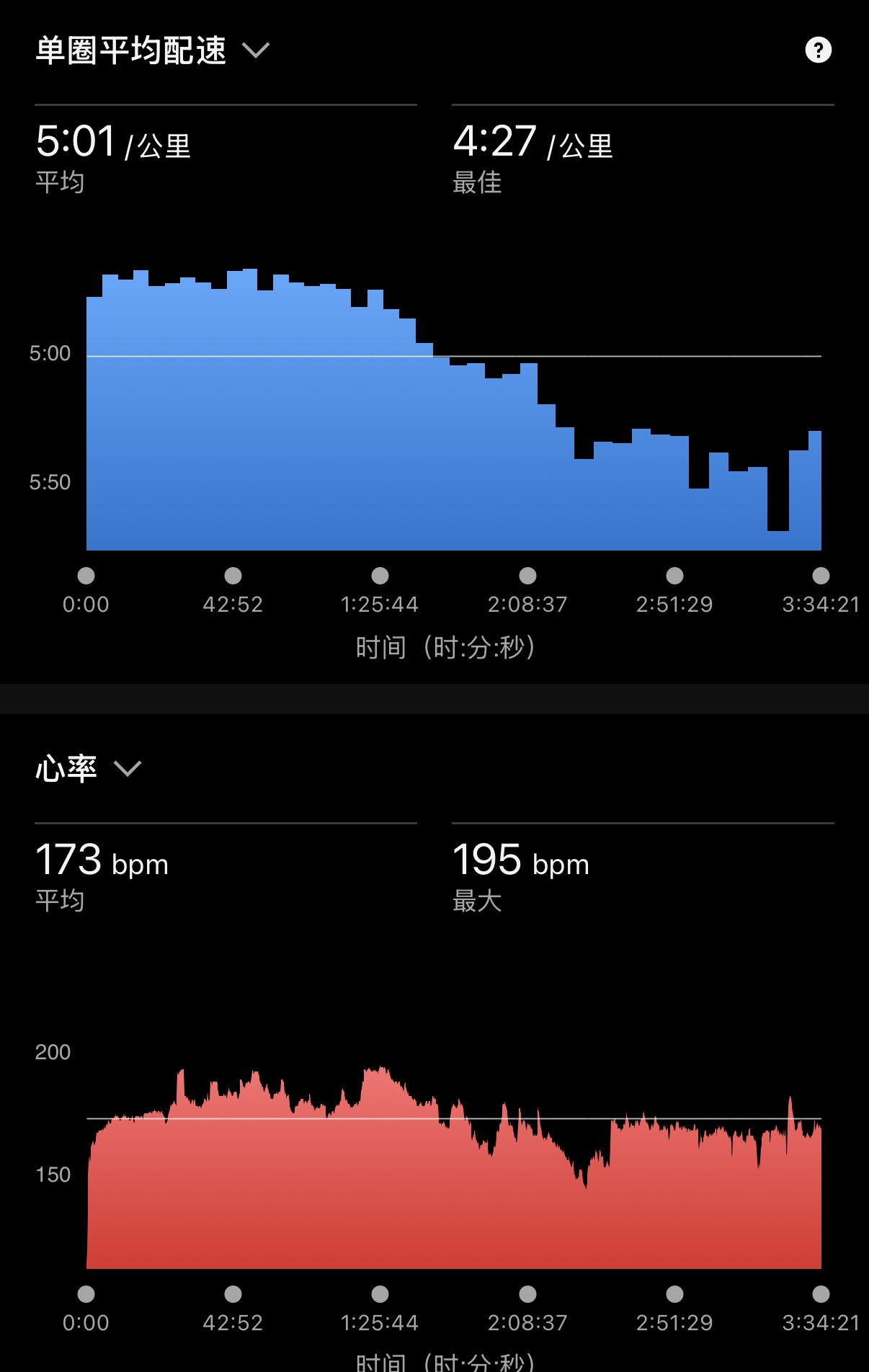 当比赛中跑出195的最大心率,却还是没能维持住目标马配的时候,那就接受“Today is not the day."吧。剩下的,就好好享受大家的陪伴和上马的赛道。