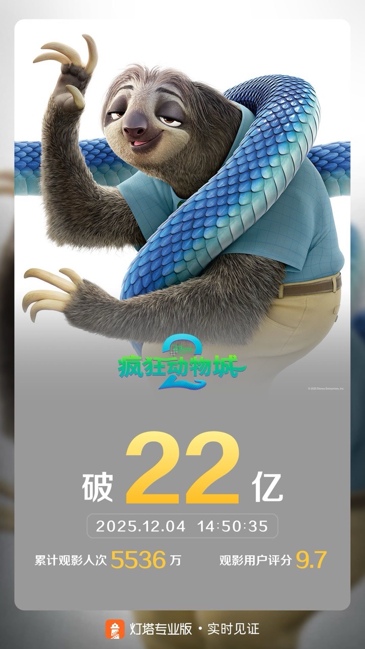20:24《疯狂动物城1》曾保持进口动画票房纪录,直至被续作打破