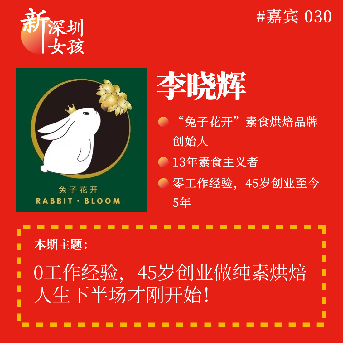人生上半场,嘉宾晓辉姐 20 年来都是全职宝妈,把全部精力用来陪伴两个孩子成长。孩子上大学后,她决定“为自己的人生做点什么”,开启纯素烘焙创业,一做就是 5 年,如今已经做到行业头部。