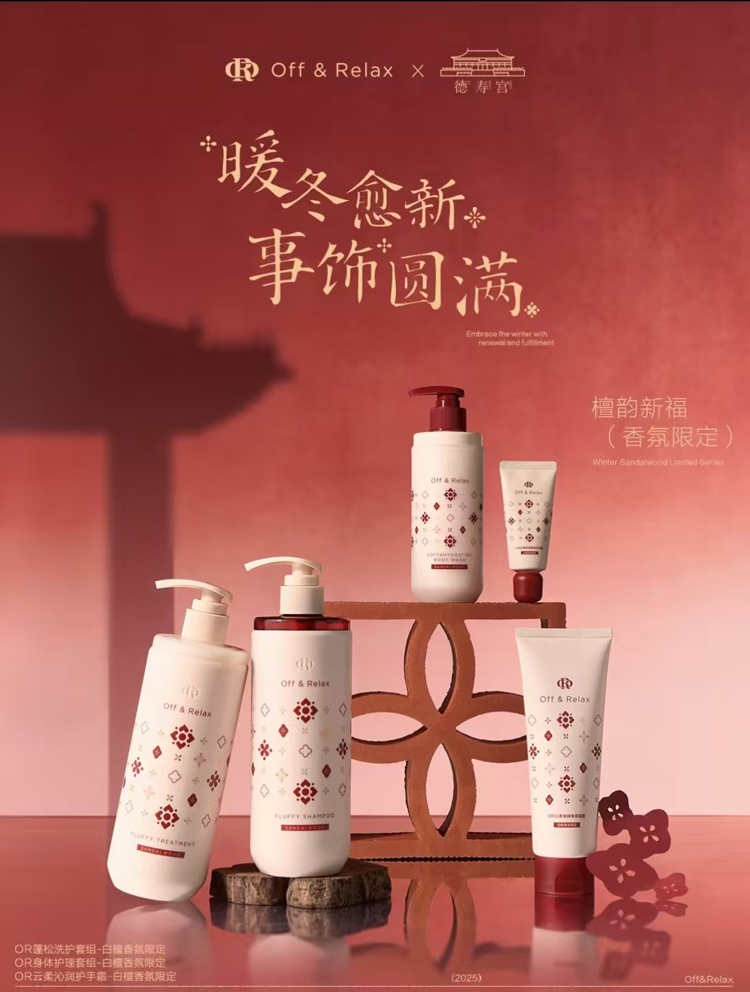 暖冬愈新,事饰圆满。这个冬天,Off&Relax推出了冬日【檀韵新福】香氛系列,包含限定洗发水,护发素,以及全新推出的沐浴油霜、身体油霜和护手霜。并且,品牌特别推出了【檀韵新福】限定香氛周边。愿每位听友于温暖岁末,洗旧迎新,伴随发丝间的香气,疗愈身心自在。