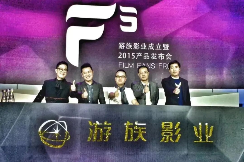 游族影业成立发布会上,林奇(居中)与多位高管在一起,那时的他对三体IP的开发充满希望。