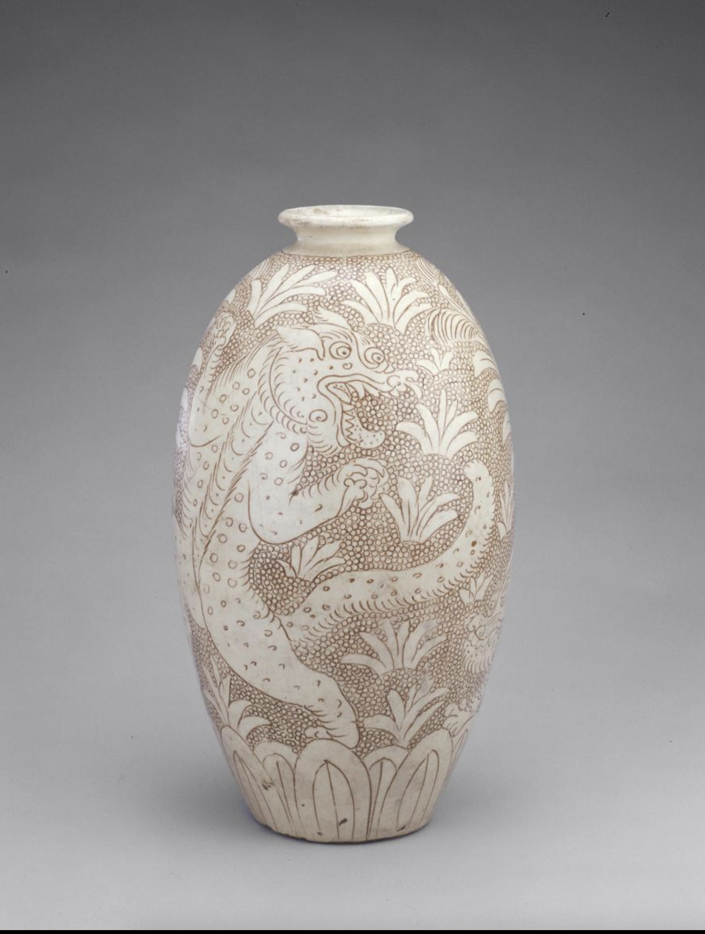 图 3:宋 登封窑白釉珍珠地划花双虎纹瓶