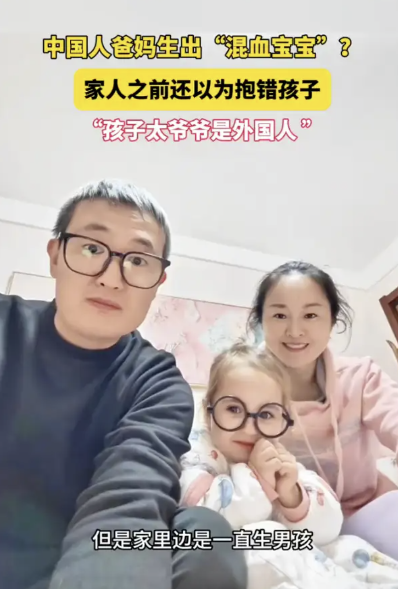 夫妻俩完全是中国人长相,却生下一个金发蓝眼“洋娃娃”般的女儿