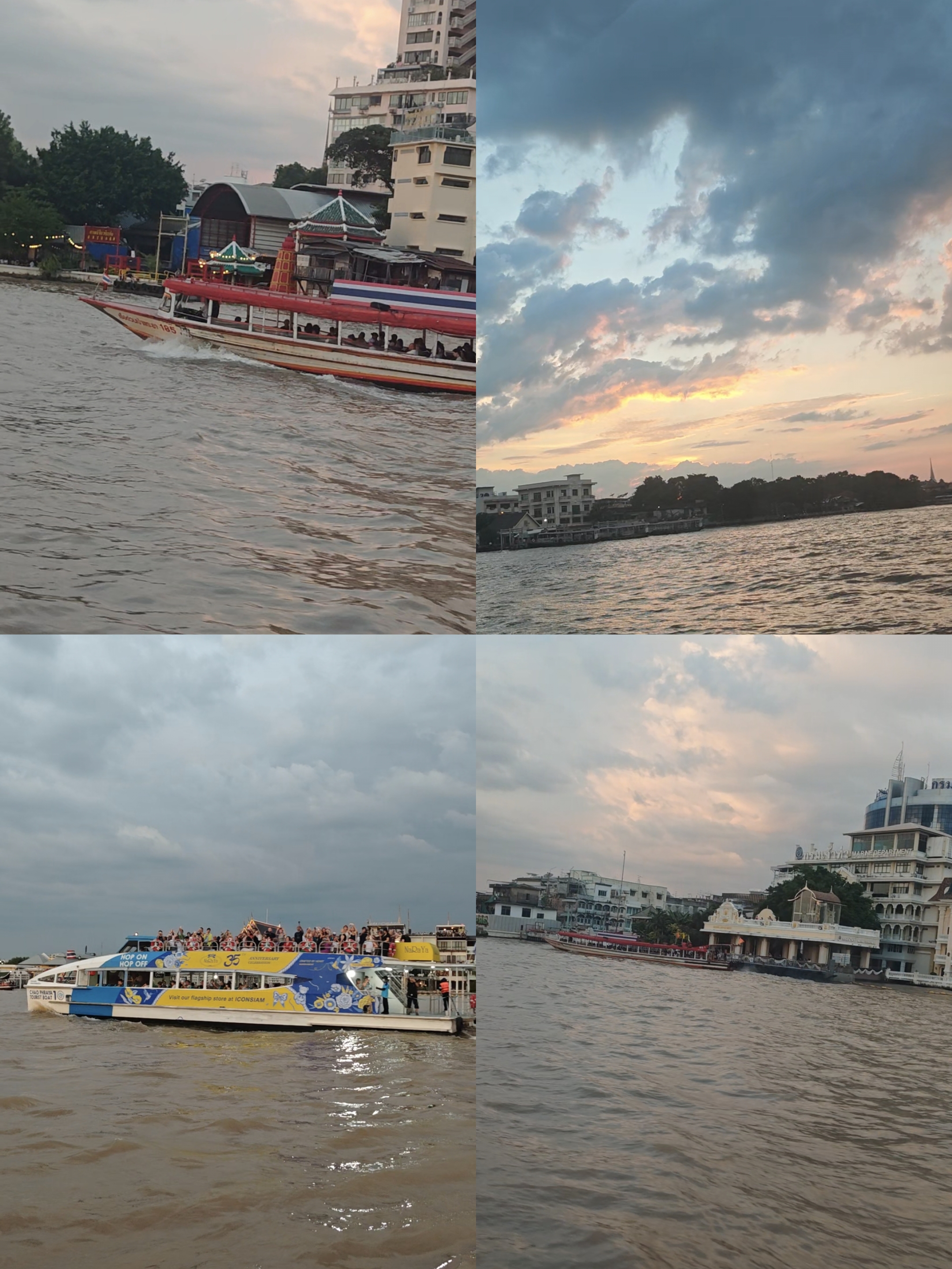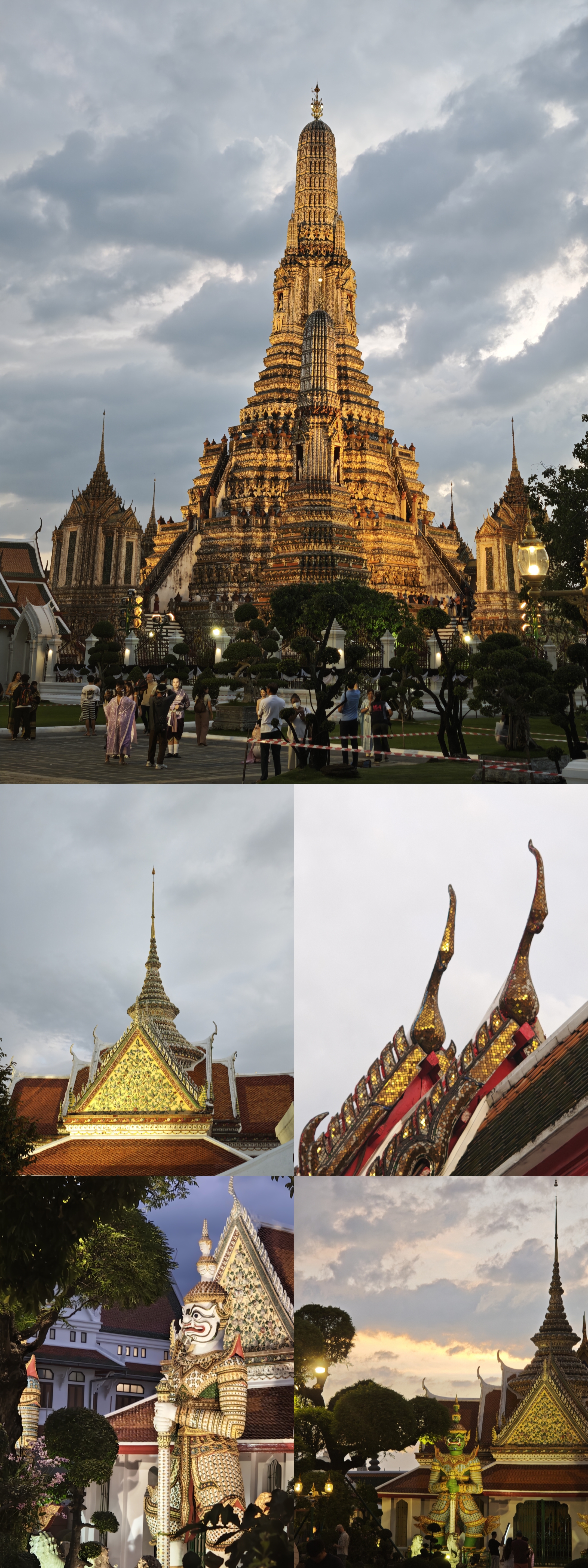 傍晚的行程留给湄南河与郑王庙。在暹罗天地码头坐渡轮顺流而下,日落前到达郑王庙,郑王庙又叫黎明寺,亮点就是雄伟的帕普朗主佛塔,日落时分与夕阳、河景相互映衬,显得格外壮观。