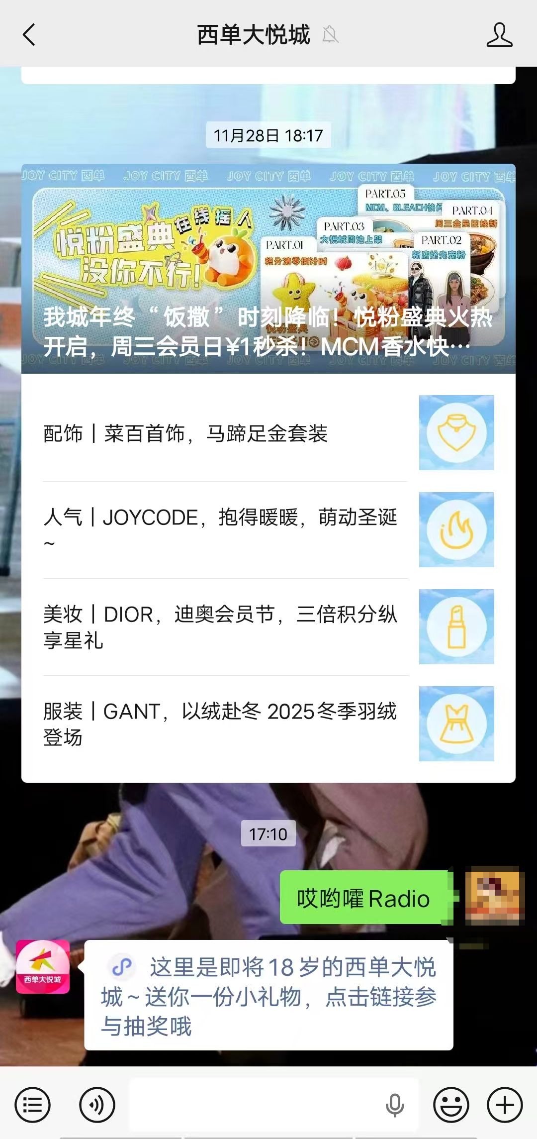 12.28日西单大悦城18周年庆,哎哟嚯Radio祝贺西单大悦城生日快乐!