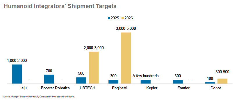 零部件供应商对2026年收入增长抱有强劲预期,这表明供应链已开始为下游机器人集成商的量产计划做准备。一些中国上游零部件供应商已开始在墨西哥、越南等地建厂,以应对潜在的关税挑战。尽管中国的集成商与上游供应链签订的主要是框架订单,但这也意味着供应链将加速整个机器人产业链的商业化进程。