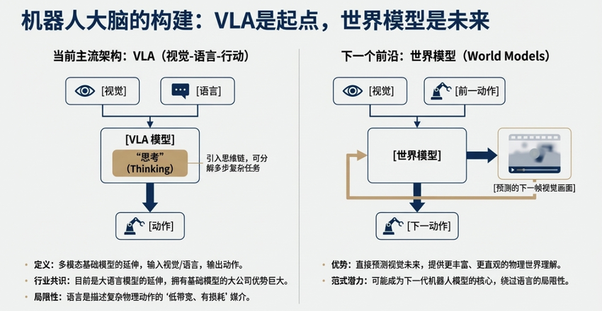 11:32 AI赋能硬件:通过VLA架构(视觉-语言-动作)让机器人具备处理物理世界复杂任务的智能。