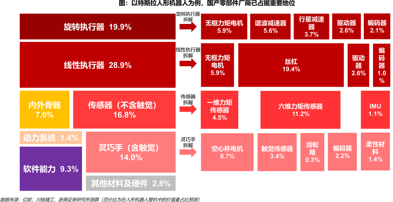 图一:人形机器人零部件价值量拆解