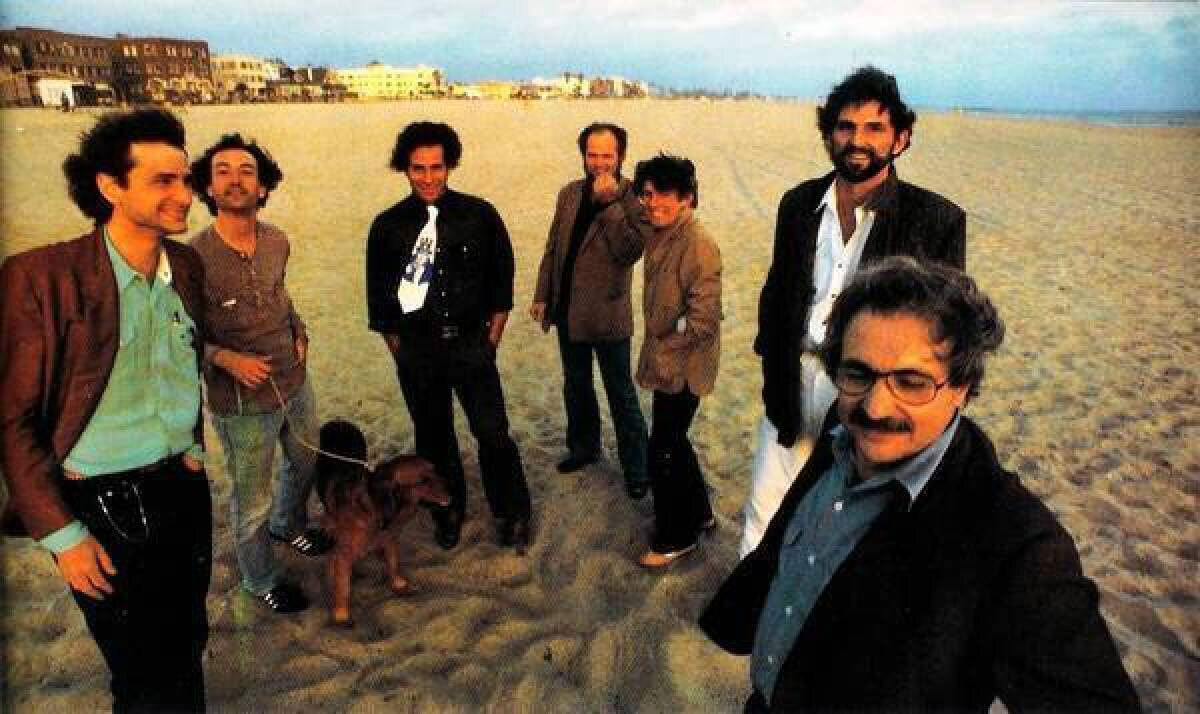 ▼ (从左到右) Frederick Fisher, Robert Mangurian, Eric Owen Moss, Coy Howard, Craig Hodgetts, Thom Mayne, and Frank Gehry at Venice Beach, 1980. (Photo: Ave Pildas / SCI-Arc).