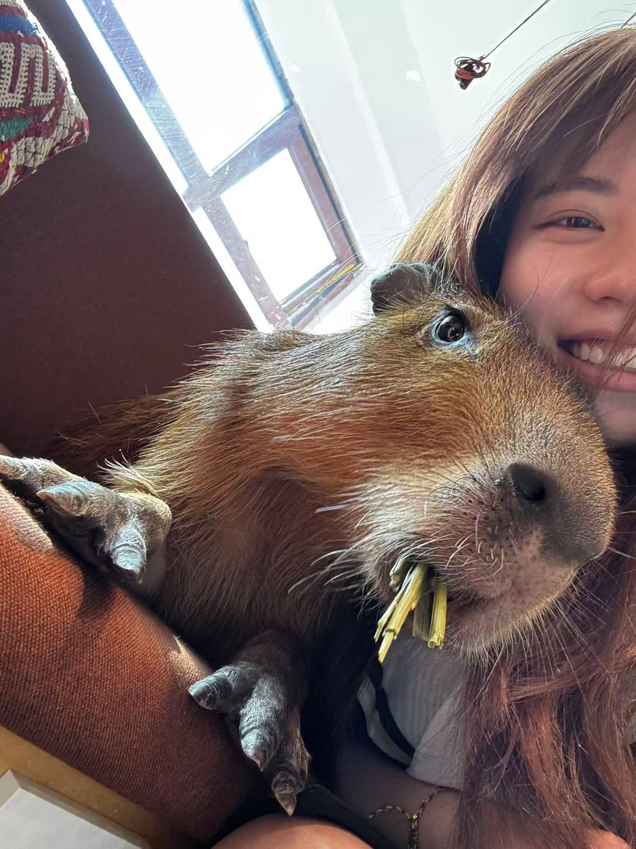 “夹子音”背后的创业灵感:选择卡皮巴拉主题,源于她本人真实的治愈体验。她描述面对动物时会不由自主变得温柔(用“夹子音”),这种能让人短暂安心、回归真实的魔力,成为了她创业的核心产品力。