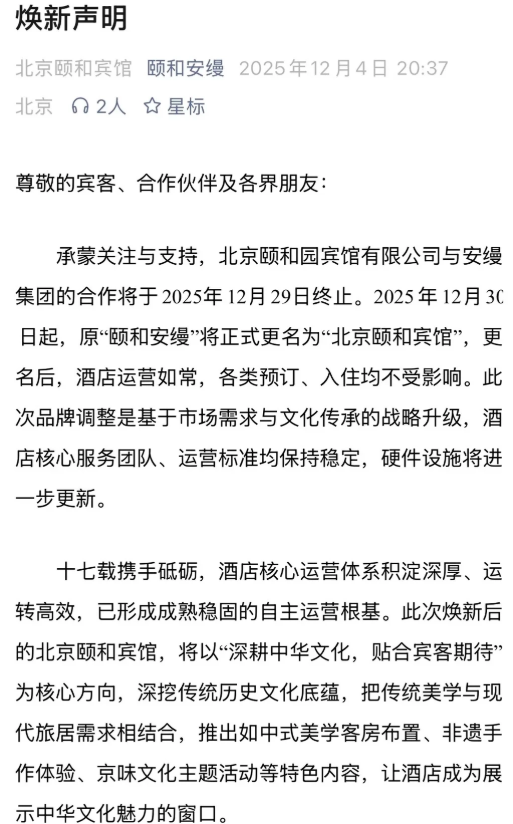 北京颐和安缦摘牌: