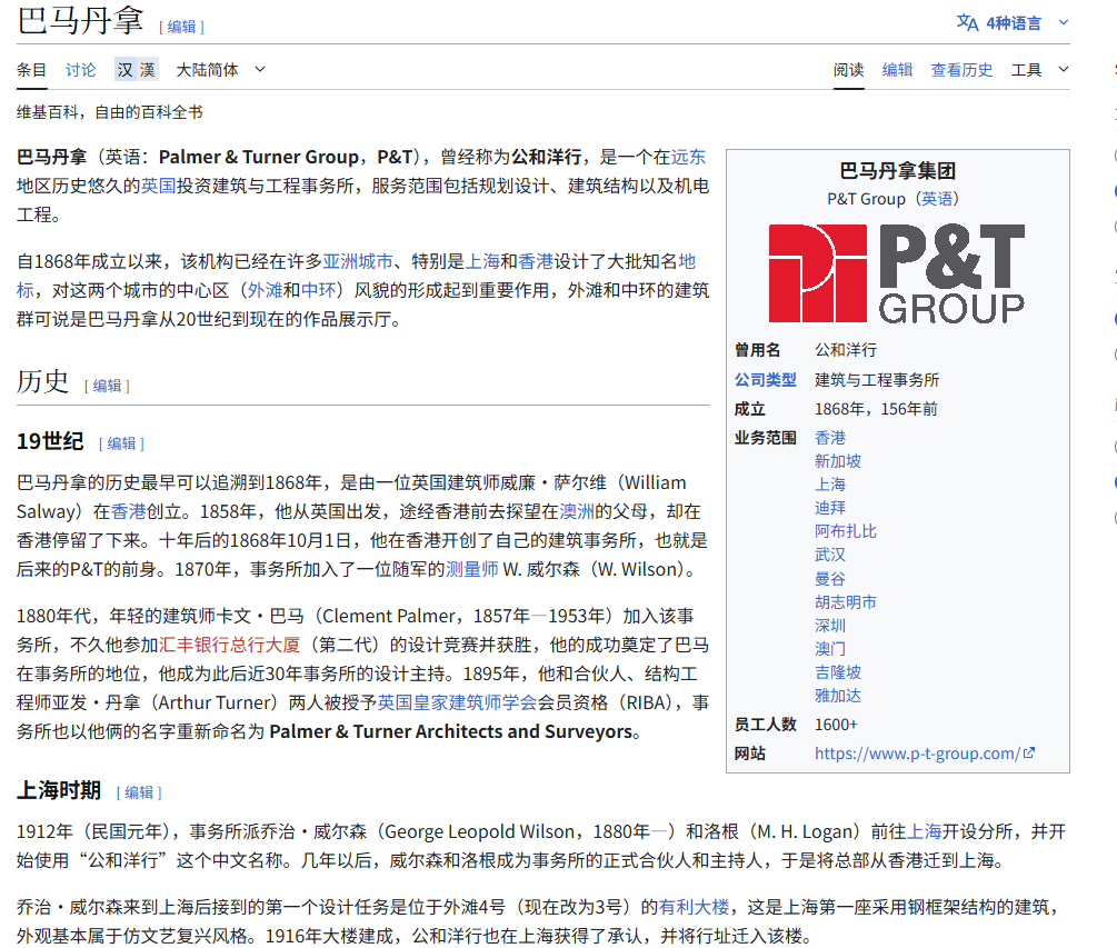 巴马丹拿设计事务所(公和洋行)设计了 上海海关大楼、上海汇丰银行大楼、和平饭店