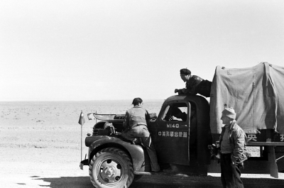 ▲ 李约瑟一行乘坐的雪佛兰卡车在老君庙和玉门之间的路上抛锚了