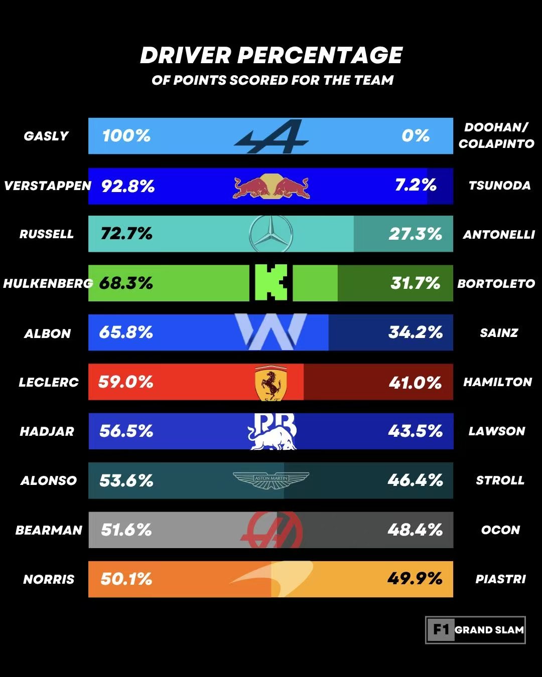 (本赛季的分差对比图,图源@F1GrandSlam)