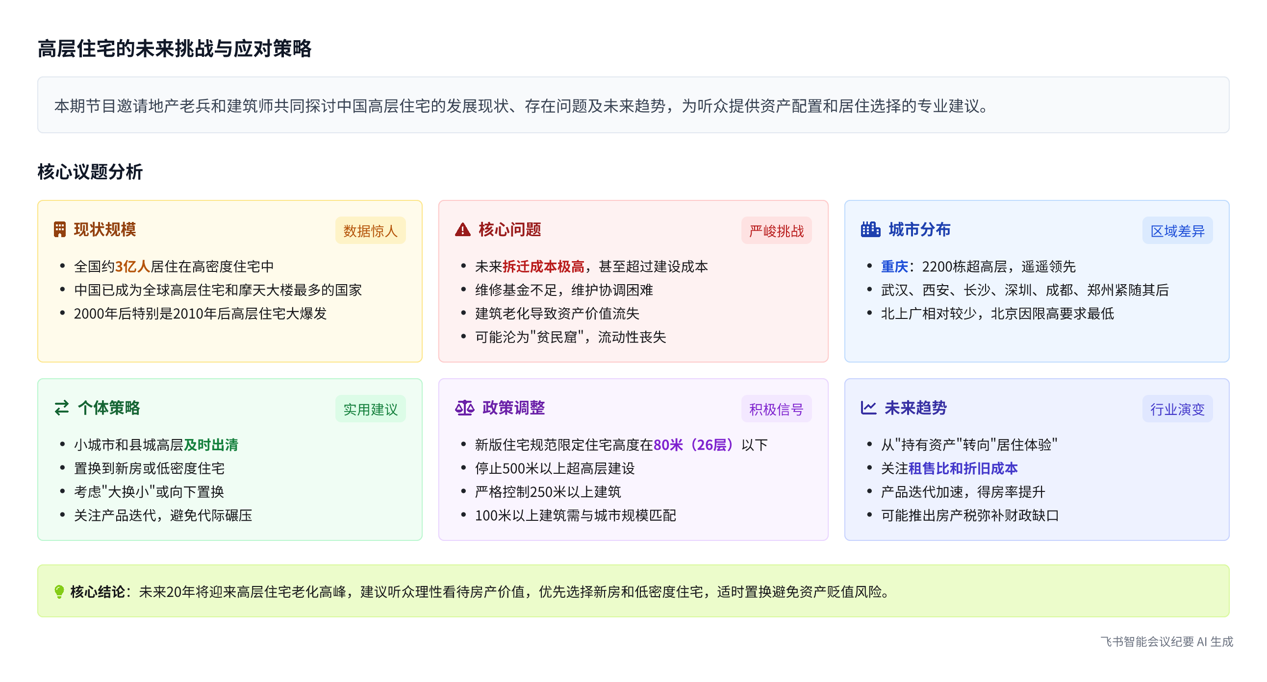 - 未来挑战:随着高层住宅老化,其拆迁和城市更新将成为巨大挑战,需提前规划和应对。