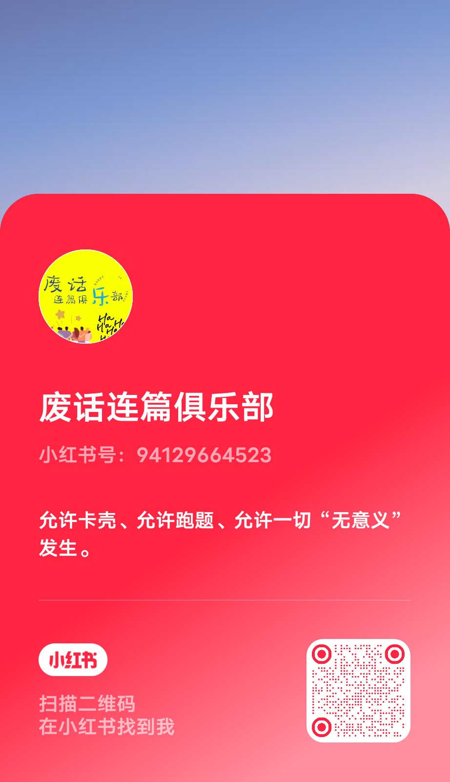在这个追求每分每秒都要有意义的世界里,允许自己说废话、听废话,是一种温和的反叛,是对自身情绪的慷慨赦免。邀请各位废话委员加入我们 可以在小宇宙评论区以及小红书搜索“废话连篇俱乐部” 后台私信我们 给我们提供废话峰会的话题 有机会参与我们的播客录制哦~