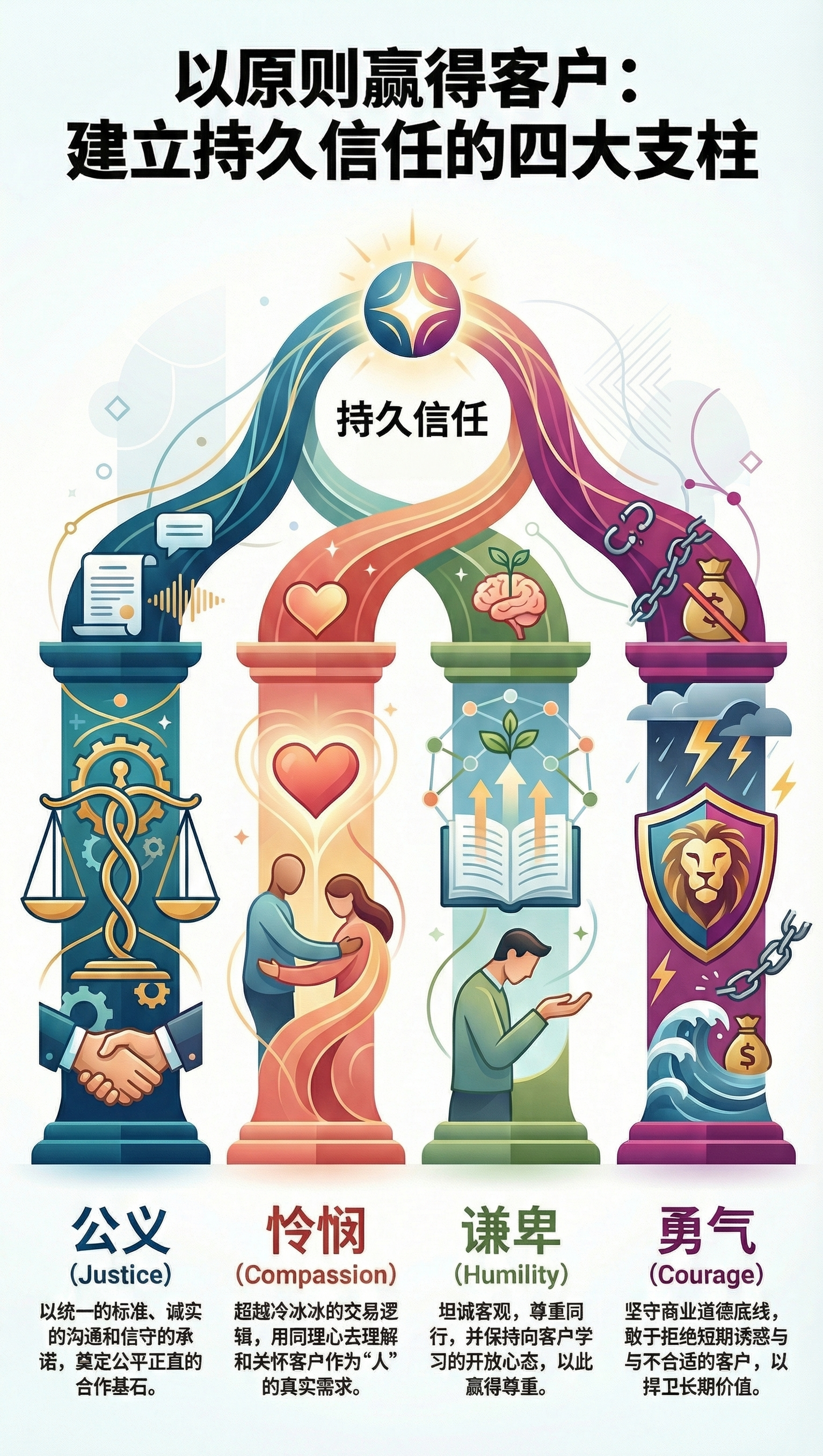 信任,是影响力的真正基石。没有信任,再强大的感召力也可能被视为“魅力陷阱”,再广泛的行动力也可能被解读为“骚扰”。客户凭什么相信你?凭什么将他们宝贵的资源、时间和未来托付给你?答案在于原则。当我们的行为始终如一地展现出某些积极、正向的原则时,信任便会悄然建立。这种基于原则建立起来的信任,会转化为一种强大的影响力,让客户不仅愿意购买我们的产品,更愿意追随我们的理念,成为我们忠实的伙伴。本期节目我们深入探讨哪些原则对于建立信任、绽放影响至关重要,以及如何实践这些原则。