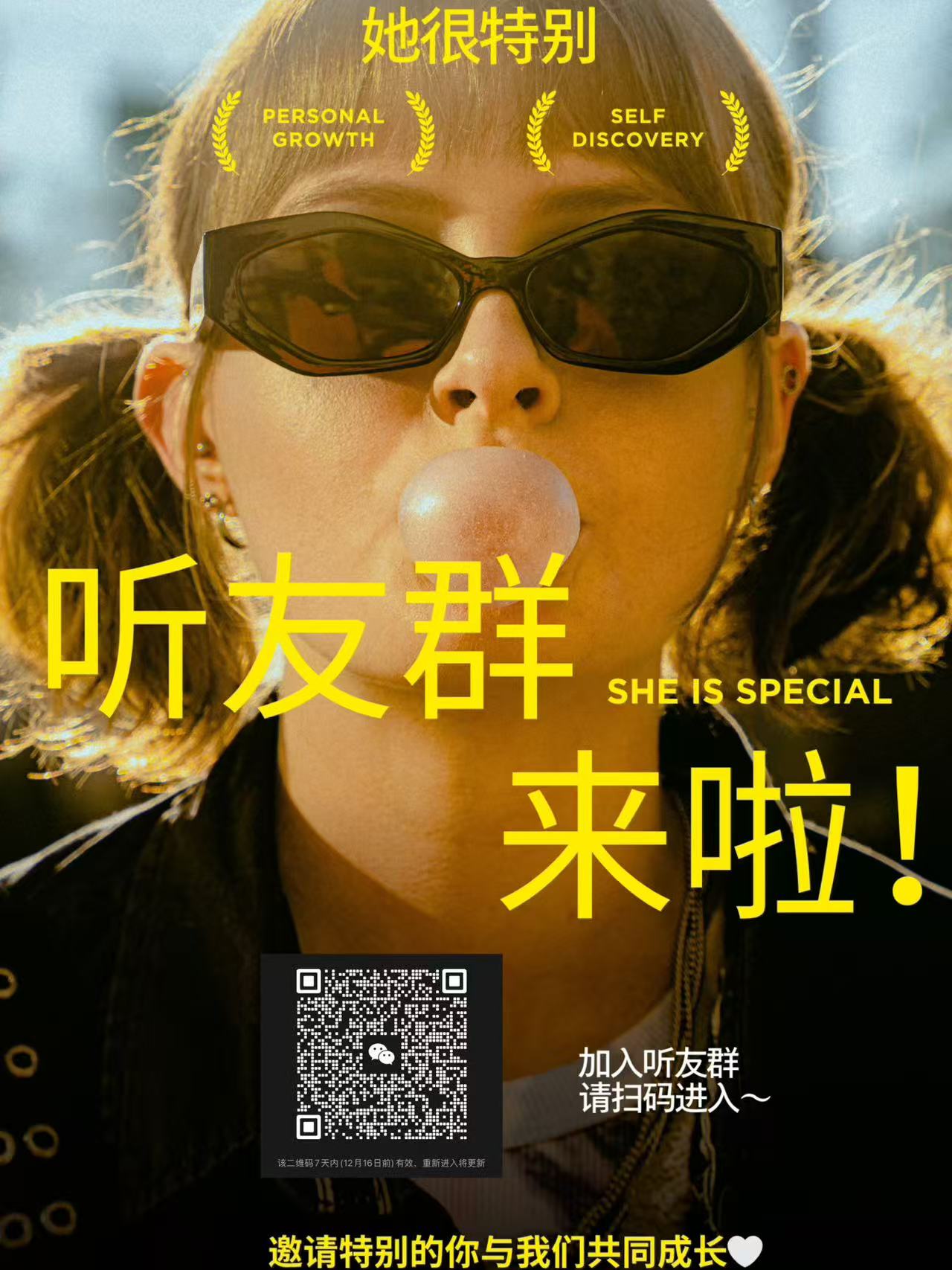 扫描下方海报二维码即可加入[她很特别]听友群,欢迎“特别的你”来和我们一起互动分享,畅聊生活吧!💌