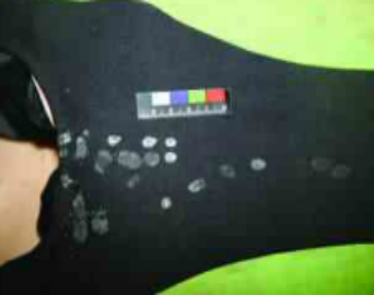 死者泳衣上的数个燃蜡滴落印