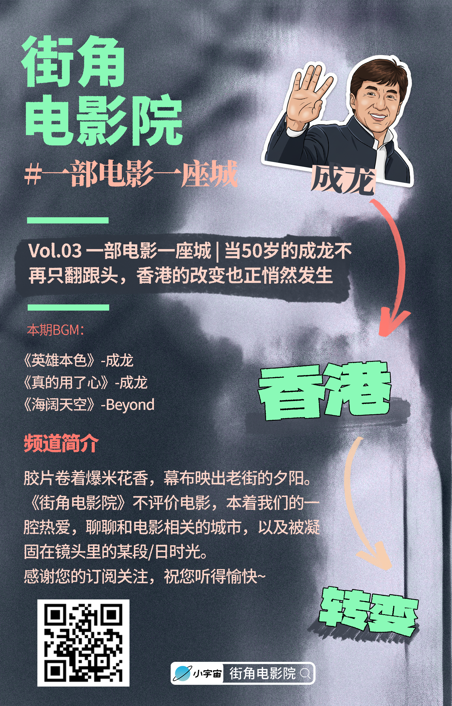本期节目以成龙转型时期的代表作之一《新警察故事》为切入点,展现了另一种香港。分享了既能带来爽感但又让观众揪心紧张的香港警匪片,以及成龙电影的独特“港味”,还从龙叔文武戏转型的决心牵引出香港电影的低迷时期,还聊到香港是如何顺应潮流,用立体方式解决土地危机,用秩序的方式管理密度的“土地规划大智慧”。