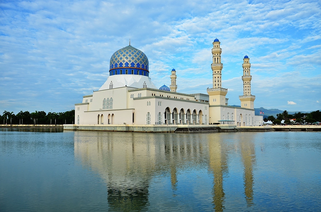 (马来西亚沙巴州著名地标性建筑水上清真寺。视觉中国 资料图)