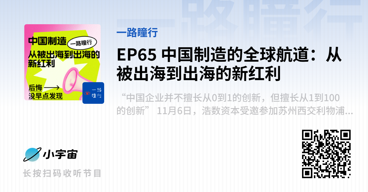 在去年「一路瞳行」上线的第65期节目里,我曾用单口播客的形式,和大家探讨了 《中国制造的全球航道:从“被出海”到“出海”的新红利》。在那期内容里,我们更多聚焦于企业产品出海、产业出海所面临的机遇与挑战。今天,我们的话题将沿着这条全球化的航道,再向前深入一步:当产品已经行销世界,产业布局开始全球落子,我们的企业,尤其是构成中国制造坚实底座的那些优秀企业,该如何通过 “融资的出海”,来真正地整合全球资源,运营一家真正的全球公司?大家也可以点击shownote中的链接去回听上一期的节目。