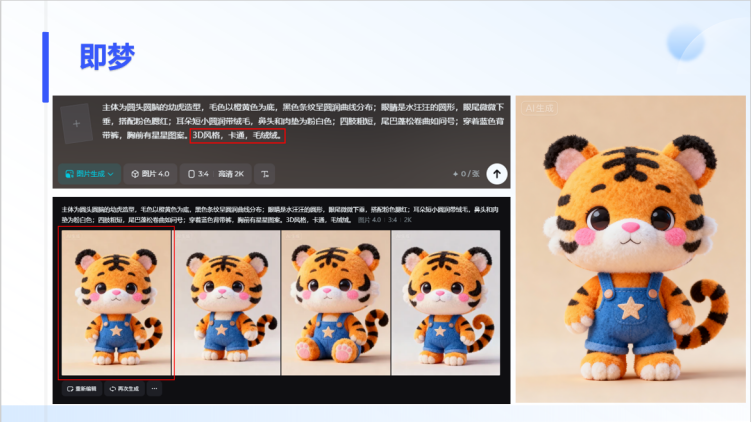 4. 在关键词最后加上"3D风格,卡通,毛绒质感等等想要的描述"