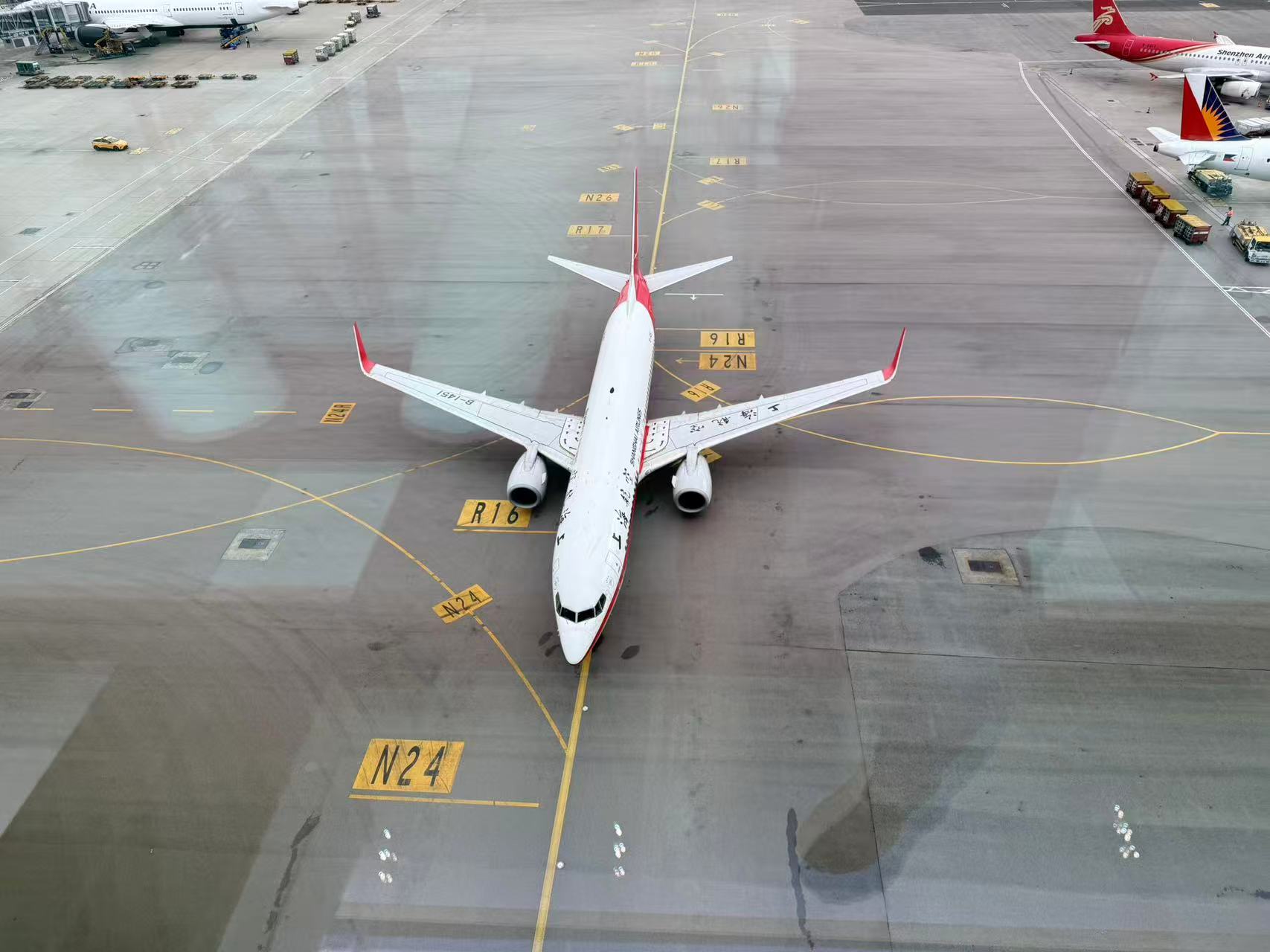 下图:从连廊上看飞机从脚下经过