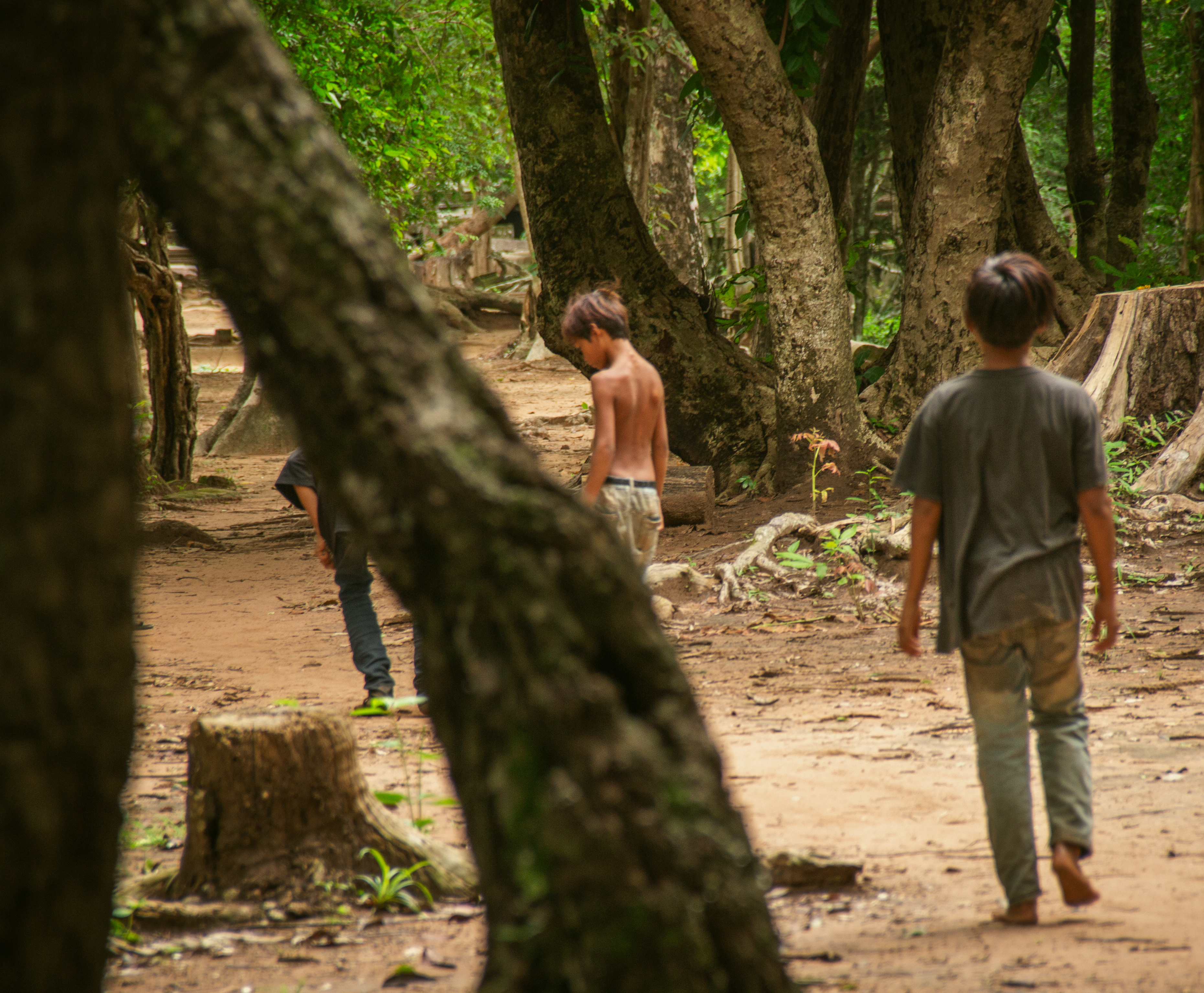 ↑ 正在崩密列神庙引道上玩丢拖鞋游戏的暹粒小孩
