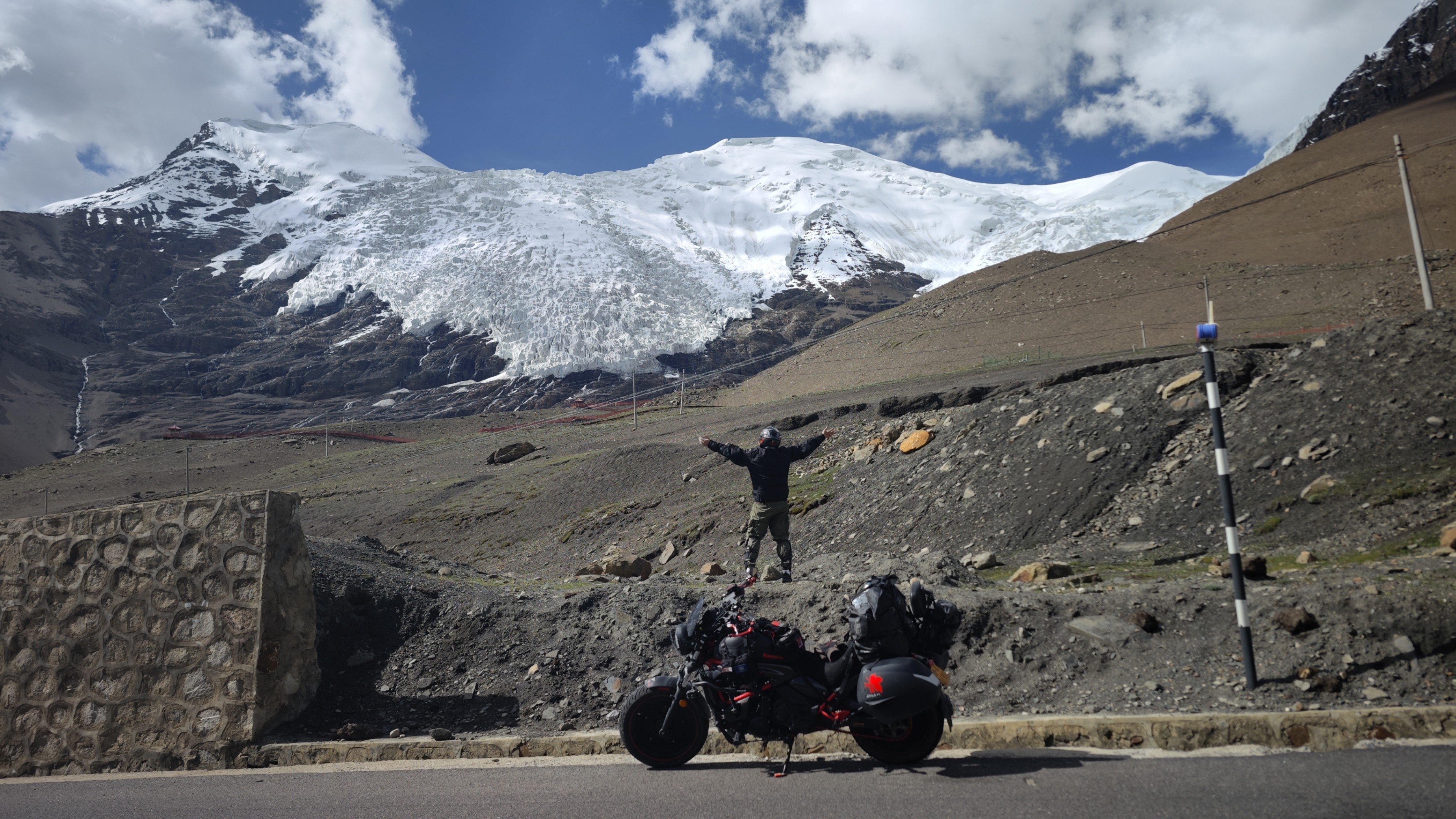 大家好呀,今年7月的时候,我的学弟,曾经的一枚摇滚青年,现在却是一位大学老师的亮子,骑着摩托车从成都出发,沿着318国道,一路向西藏进发,目标珠峰大本营的旅途。这段旅途对于他而言,有还十几年前许下的愿的目标,有在珠峰大本营仰望珠峰的期盼,以及解除他心中困扰了自己半年多的心结。于是他骑上他的川崎小火神,坚定地出发了。在路上他遇到了车祸,也救过出车祸的人,成为了路上越来越多摩旅同好的领路人,最终冒着青藏高原上寒冷刺骨的冰雨抵达了珠峰大本营。这一路,受伤,疲劳,委屈,都没有丝毫动摇他想要完成这趟旅程的脚步。终于在最后一天,当一束阳光射进屋内,飘在他心中半年多的乌云也终于散去了。