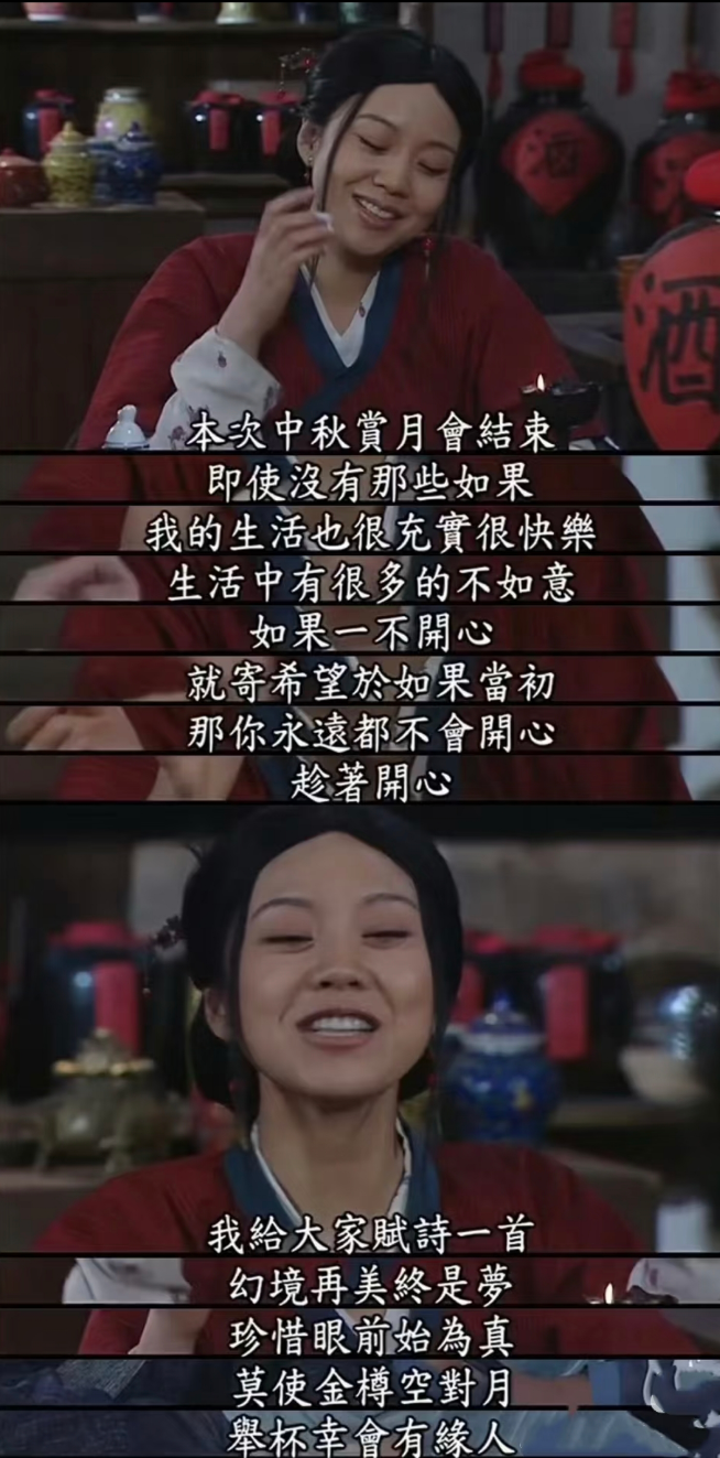 初看时只觉得人来人往的同福客栈热闹非凡,江湖上的人来了又走,在小小的一方客栈留下万般惊险又动人的故事。等长大一些,开始理解剧中人的取舍与忧思,在鸡毛蒜皮的生活里期待下一次相逢。再成熟点,到了钱夫人这般"家大业大老钱又听话"的阶段,关中七侠镇早已成为精神图腾,光是听到茉莉花的BGM响起,人就会安心。