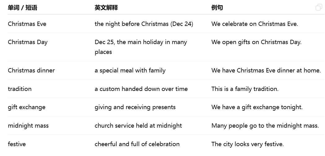 1. 📚 圣诞节相关基础词汇:从 12 月 24 日讲起