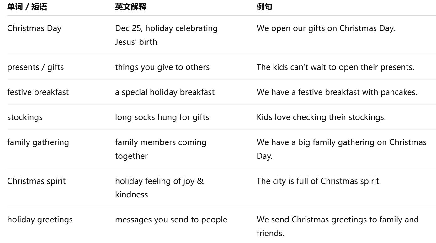 1. 📚 圣诞节 12 月 25 日相关词汇(核心词汇)